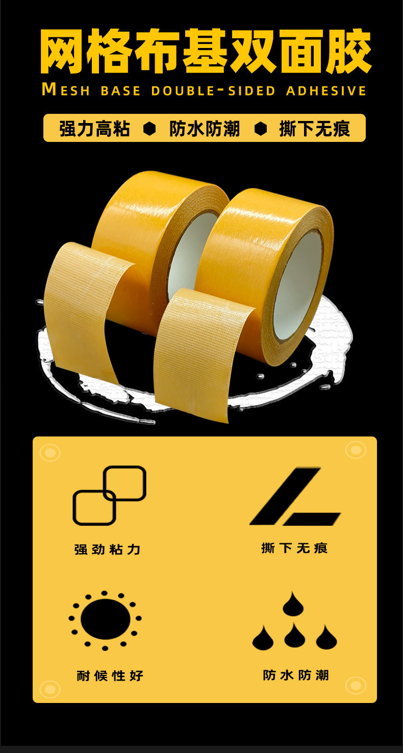• 메쉬 천 기반 양면 테이프, 폭 50mm * 길이 10m (1 상자당 120롤)