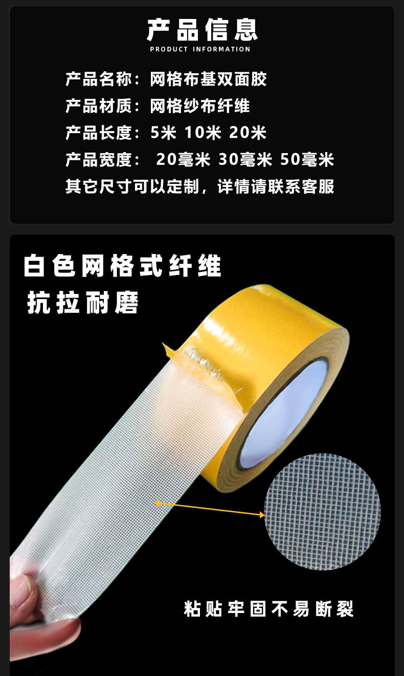 • 메쉬 천 기반 양면 테이프, 폭 20mm * 길이 20m (1 상자당 180롤)