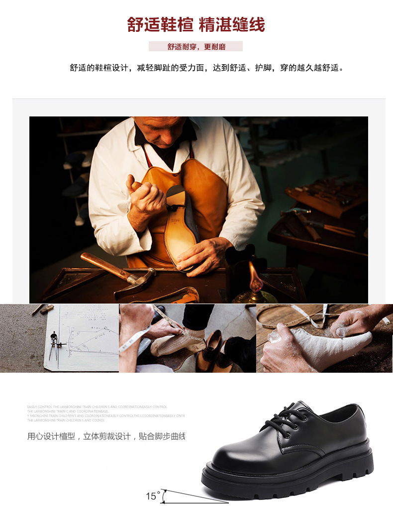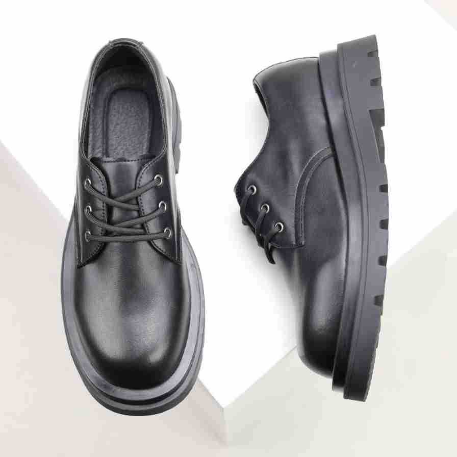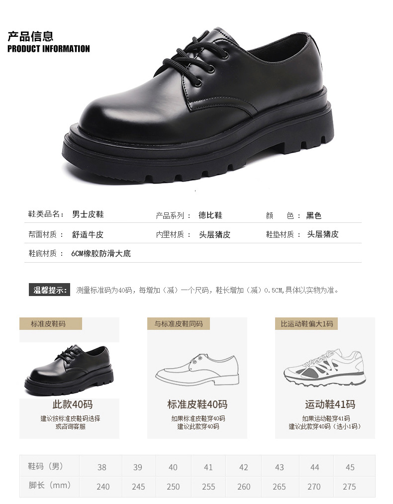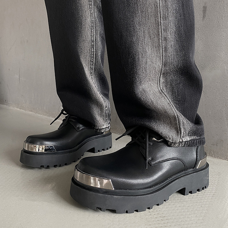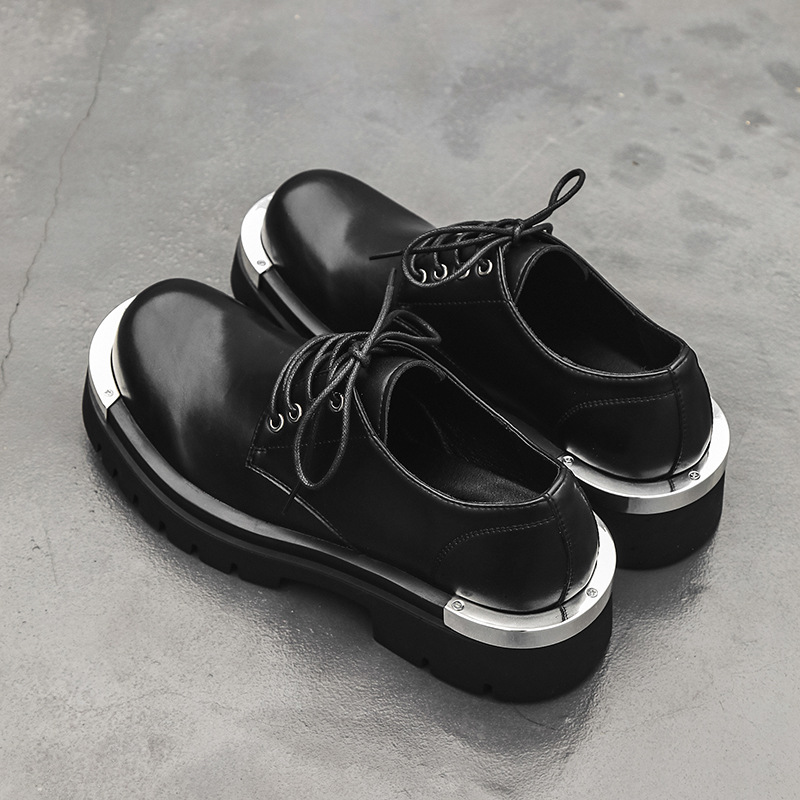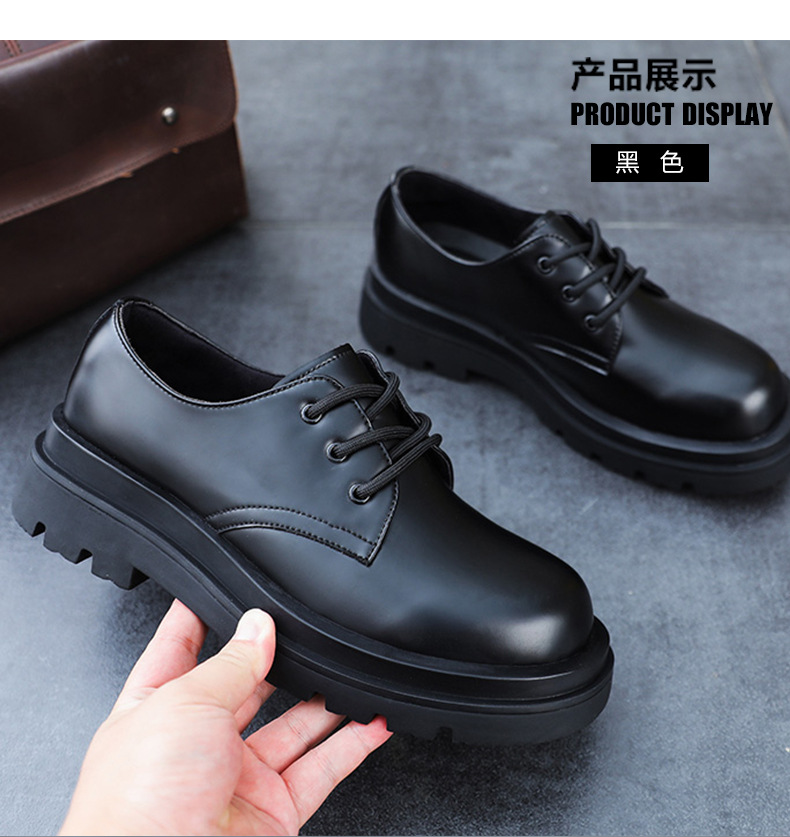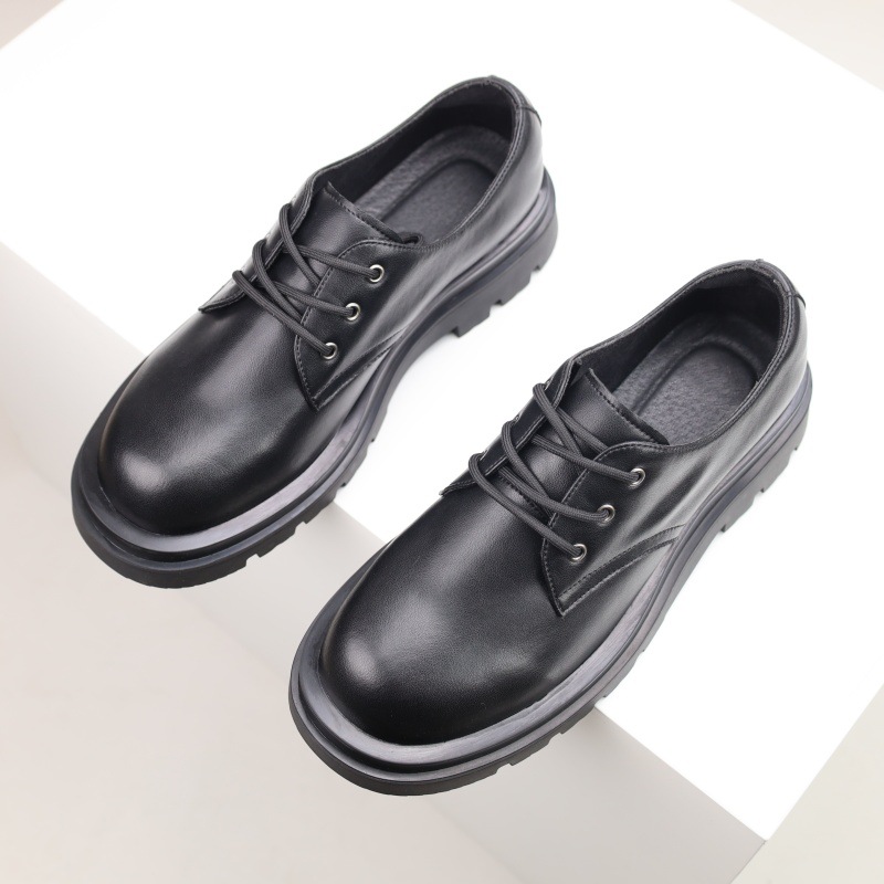 더비 신발 남성용 가죽 신발 정품 가죽 로우탑 마틴 심플 두꺼운 밑창 높이 블랙 작업복 신발 캐주얼 남성용 가죽 신발