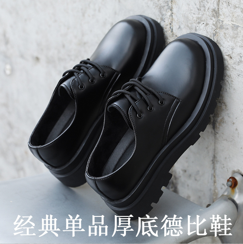 더비 신발 남성용 가죽 신발 정품 가죽 로우탑 마틴 심플 두꺼운 밑창 높이 블랙 작업복 신발 캐주얼 남성용 가죽 신발스토어 가기
