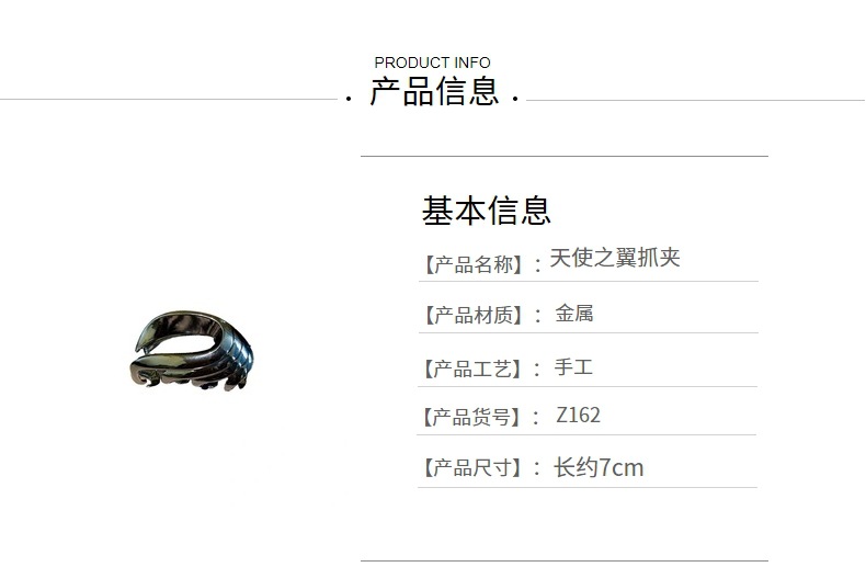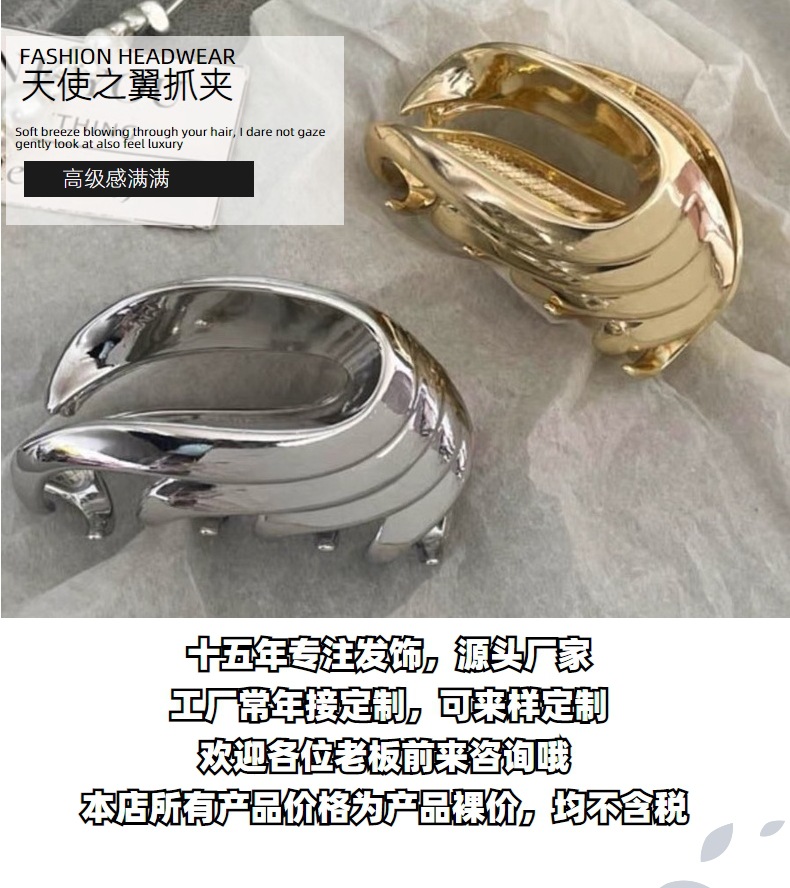 높은 말굽 고정 유물 천사 날개 금속 그랩 클립 고급 감각 백 헤드 디스크 머리핀 상어 클립 헤어 액세서리 여성스토어 가기