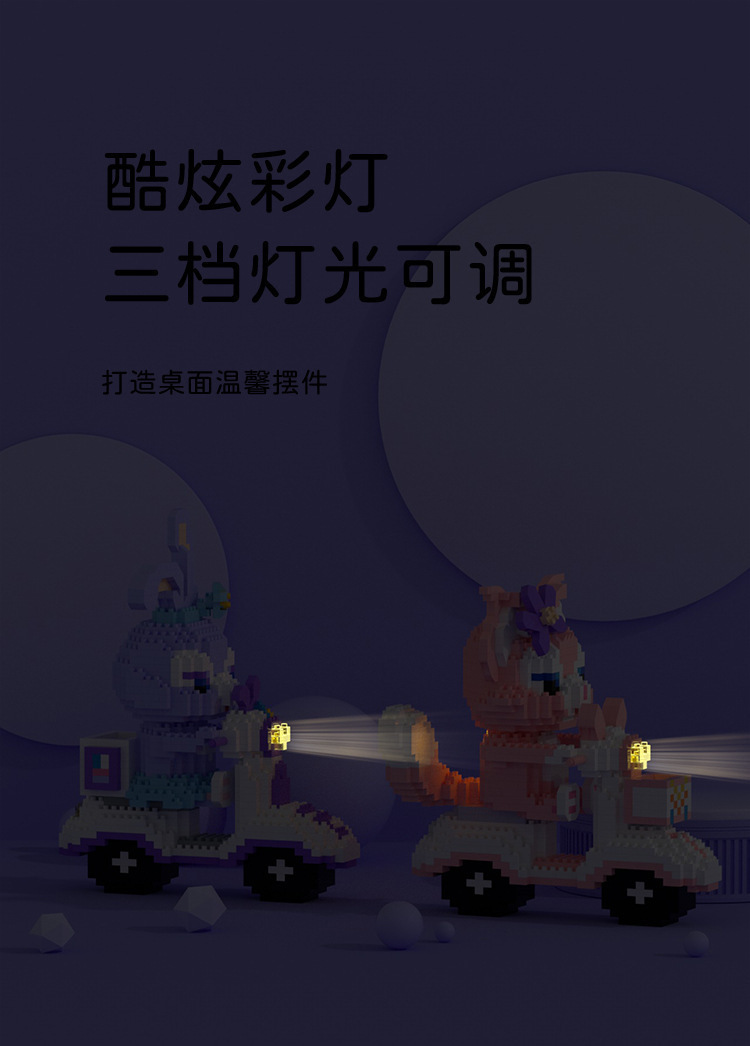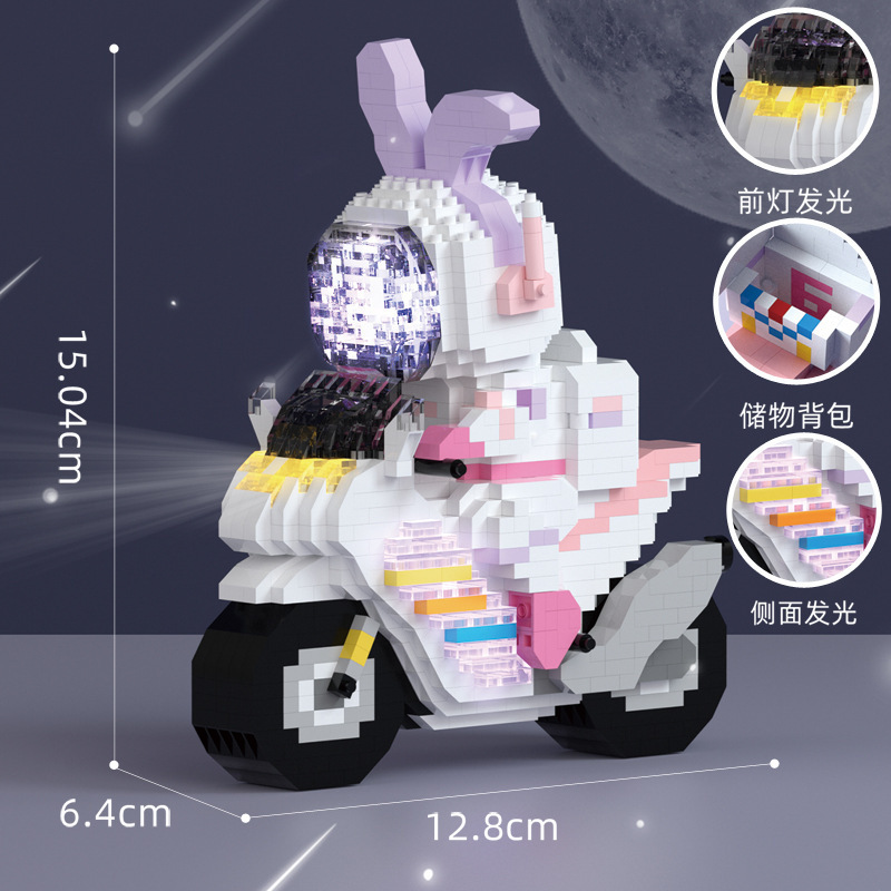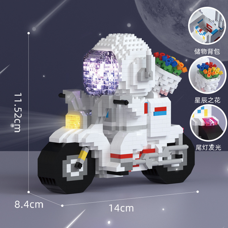 Mekensm 빛나는 우주인 미세 입자 퍼즐 조립 빌딩 블록 오토바이 인형 장난감 장식품 배치