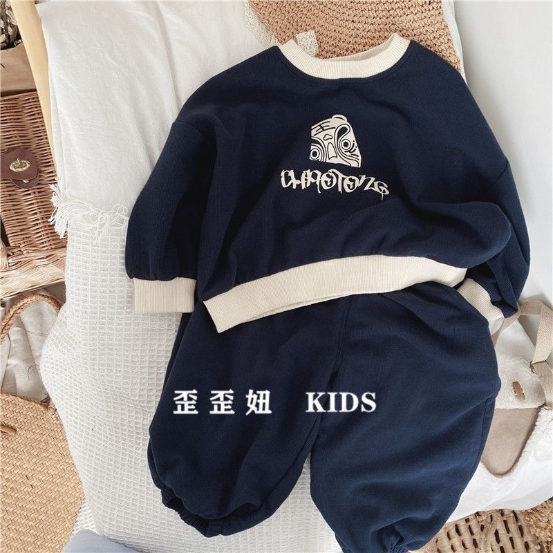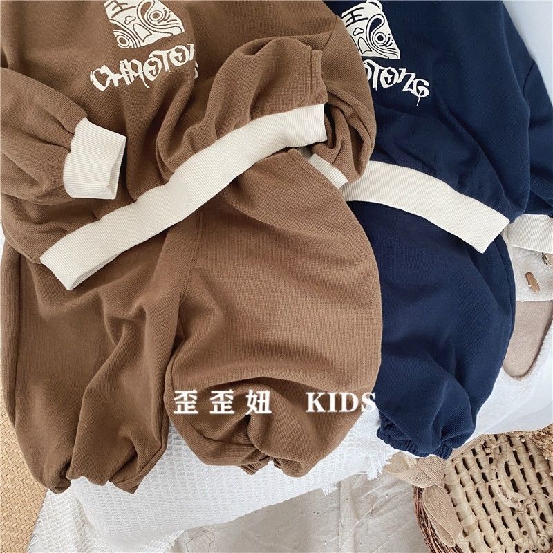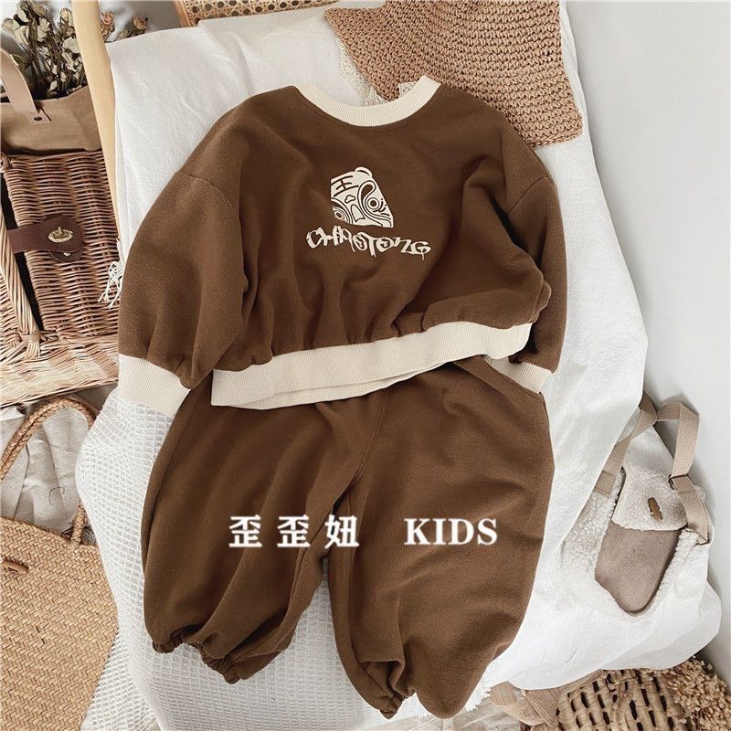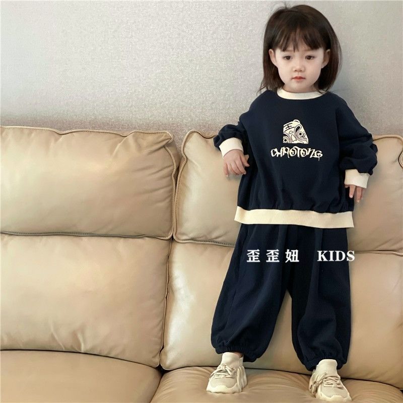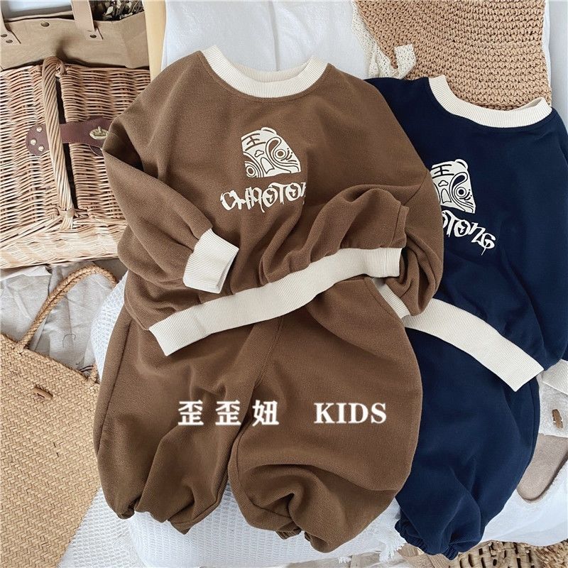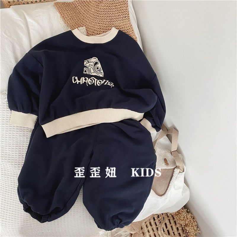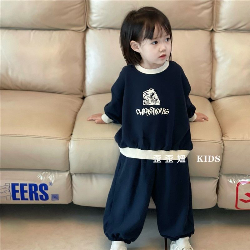 새로운 소년과 소녀 조끼의 봄과 가을 한국어 버전 세트 만화 대비 색상 느슨한 외국 스타일 아기 두 조각 머리 세대의 세트스토어 가기