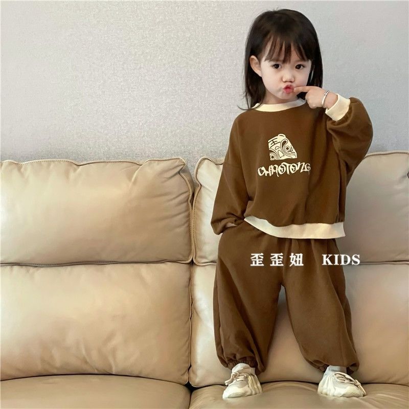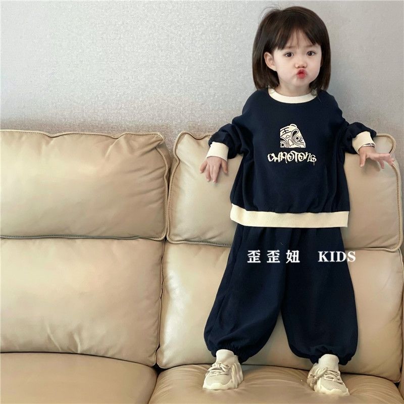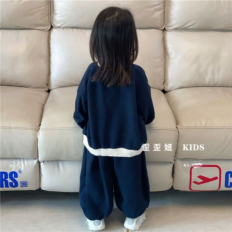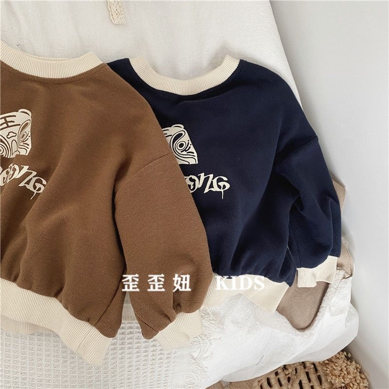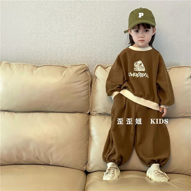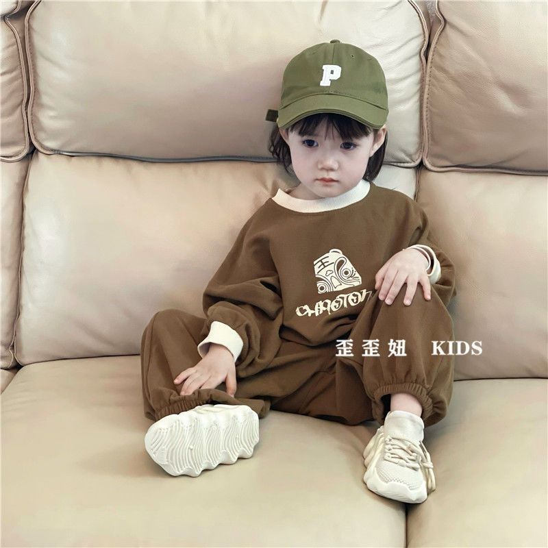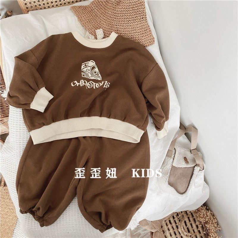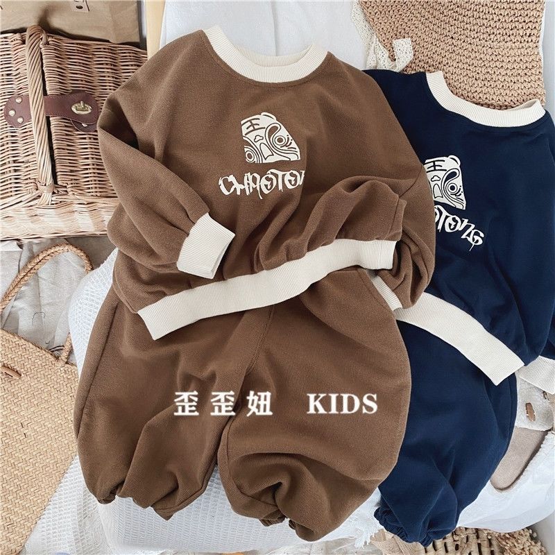 새로운 소년과 소녀 조끼의 봄과 가을 한국어 버전 세트 만화 대비 색상 느슨한 외국 스타일 아기 두 조각 머리 세대의 세트스토어 가기