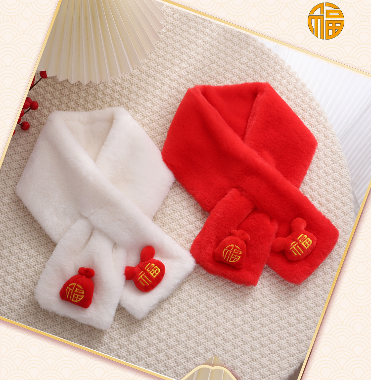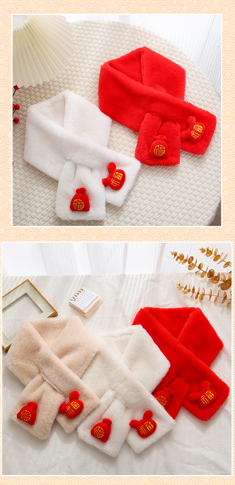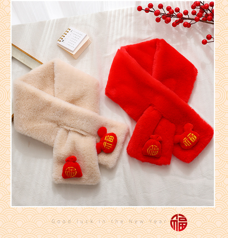 새해 빨간 해피 스카프 한국 모조 토끼 모피 스카프 겨울 두꺼운 따뜻한 결혼 동반자 선물 반환 스카프스토어 가기