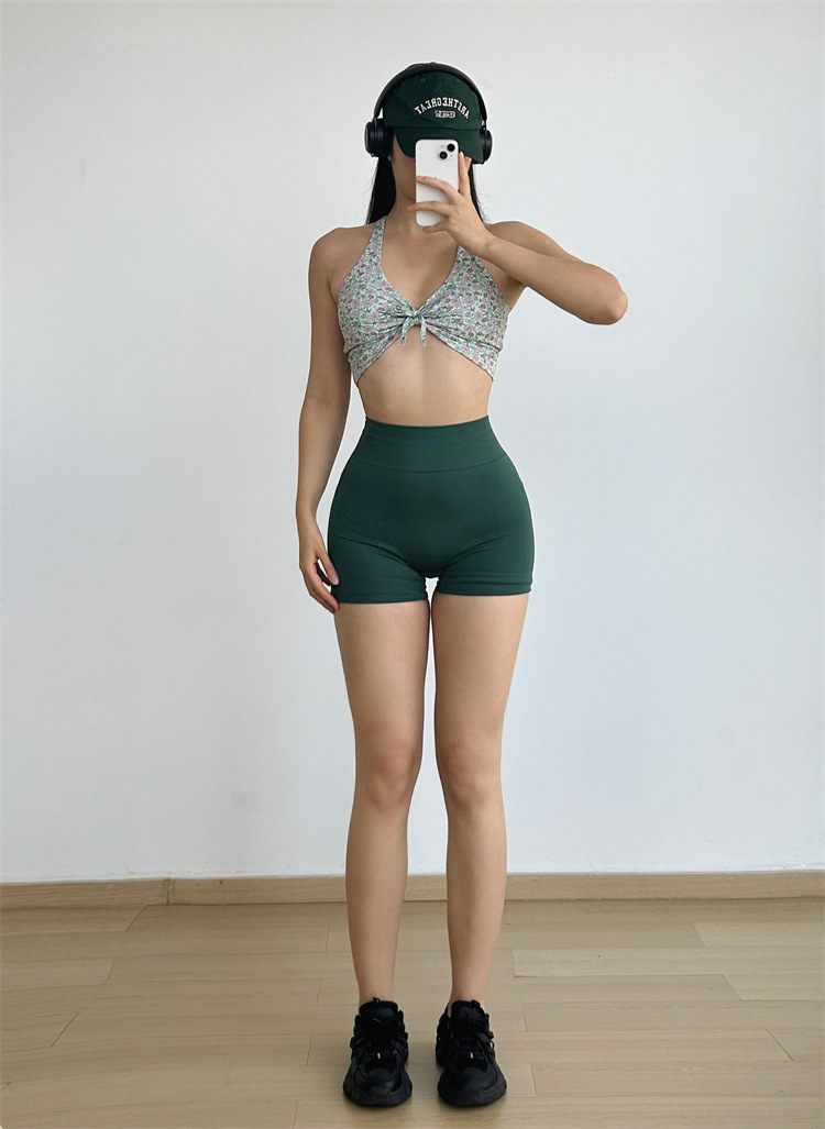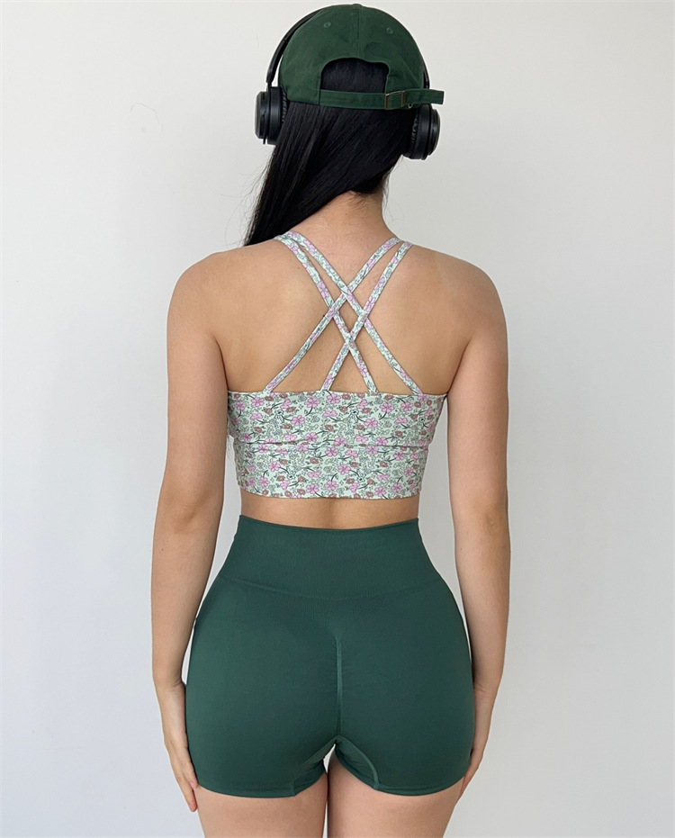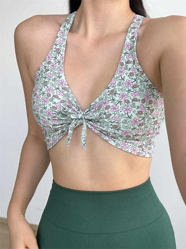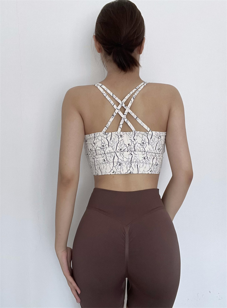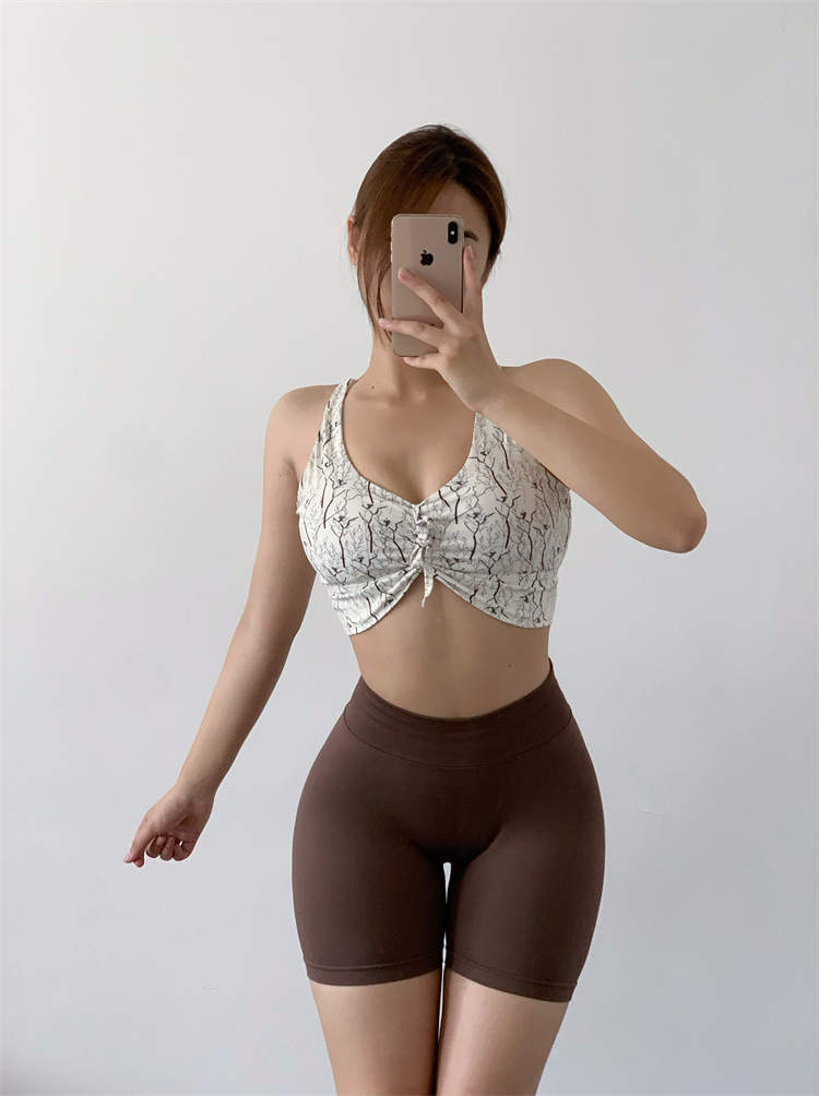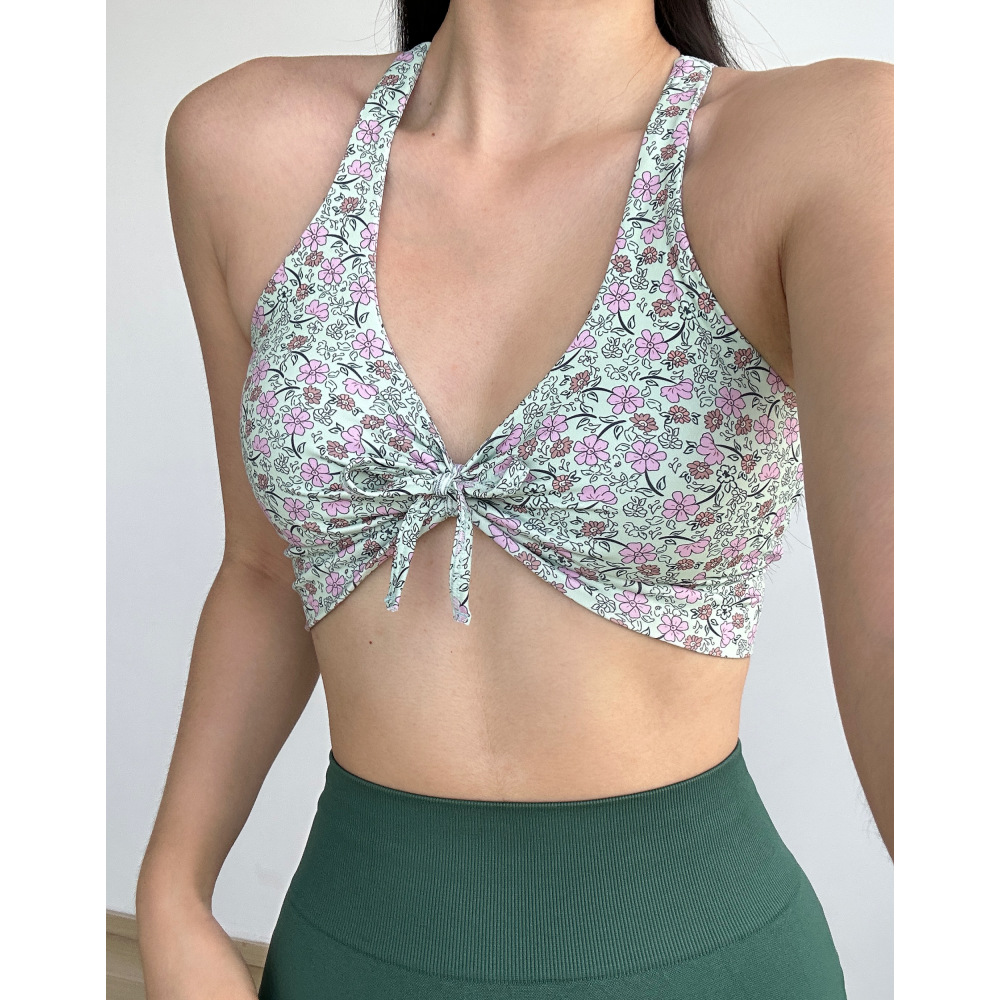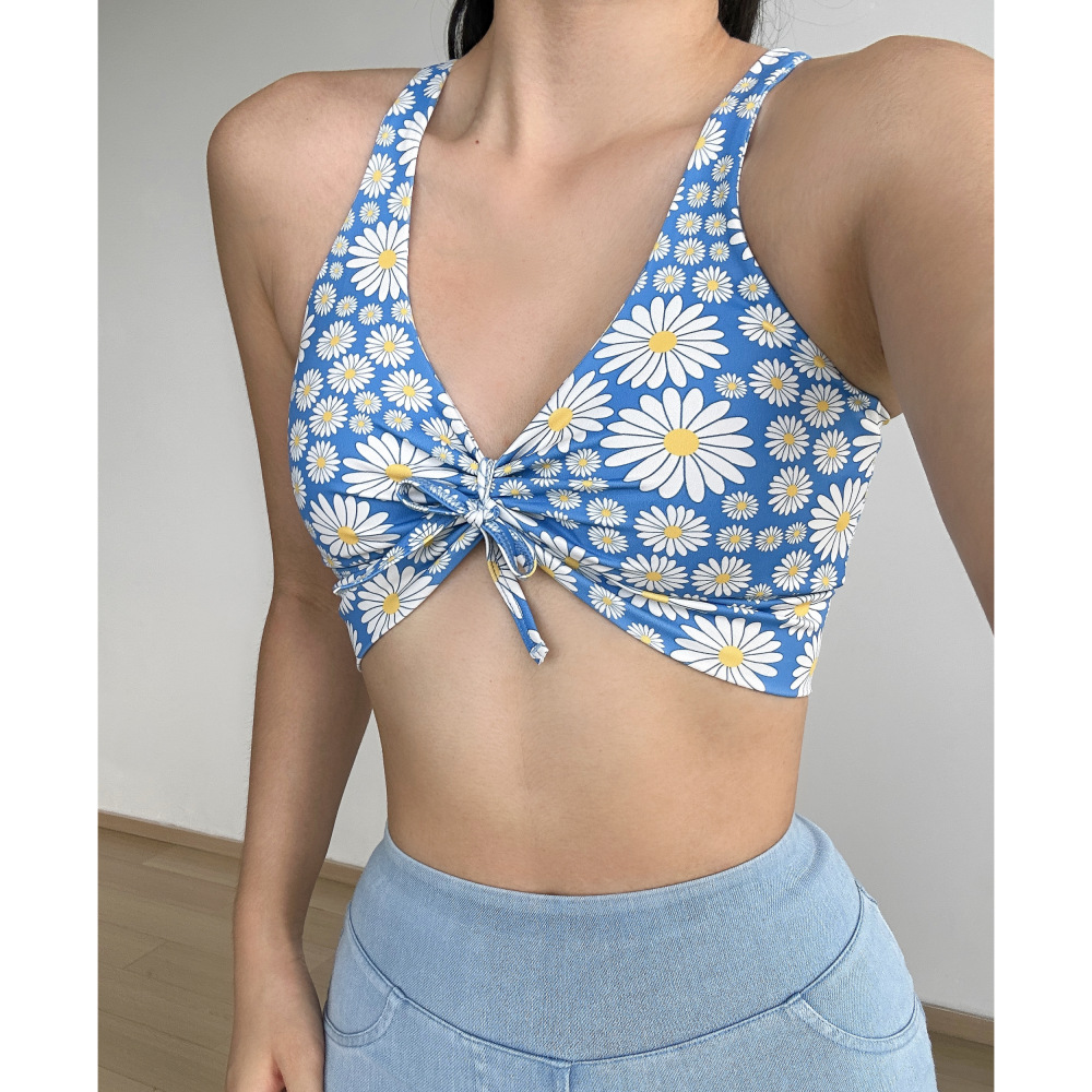 데이지 플리츠 스트랩 요가 섹시한 필라테스 브래지어 속건 졸라매는 끈 피트니스 조끼 속옷 꽃 1284