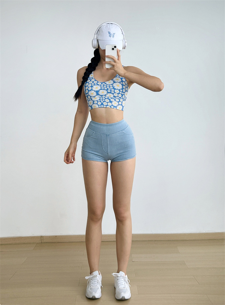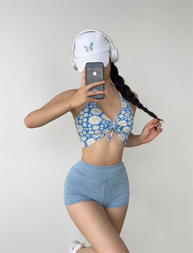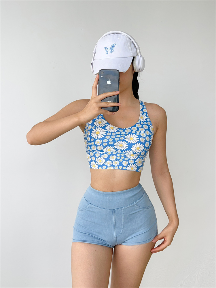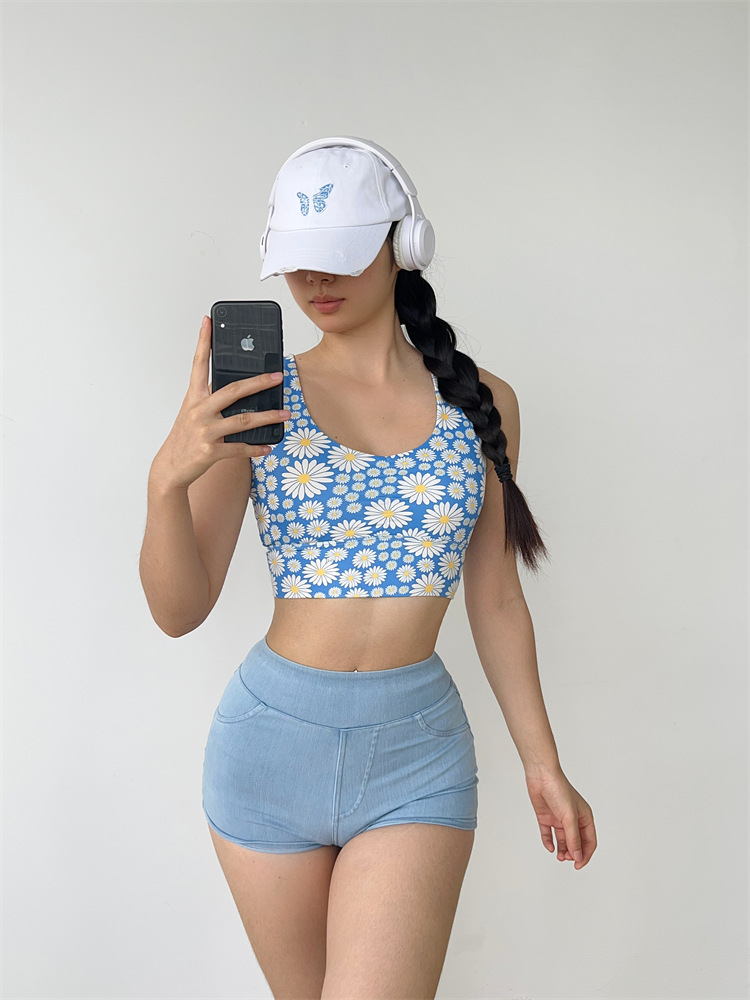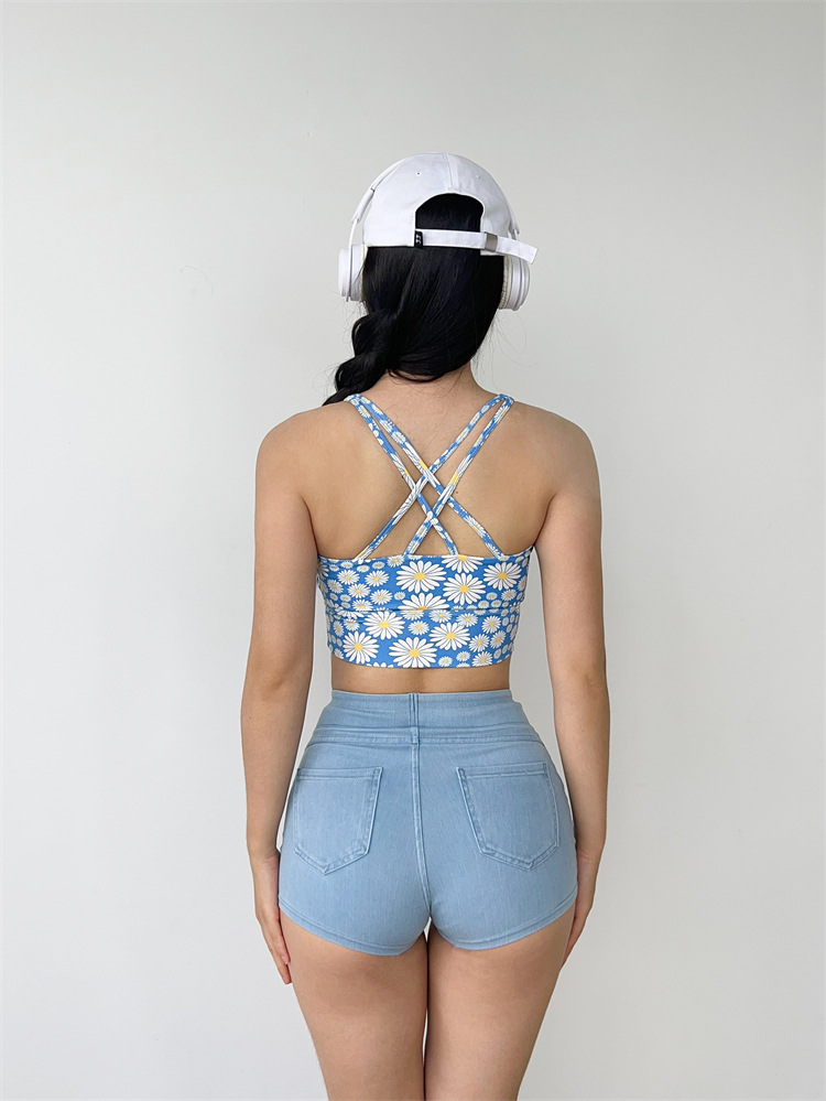 데이지 플리츠 스트랩 요가 섹시한 필라테스 브래지어 속건 졸라매는 끈 피트니스 조끼 속옷 꽃 1284스토어 가기