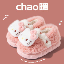 헬로 키티 어린이 면 슬리퍼 겨울 여자 귀여운 정품 실내 따뜻한 봉제 가방 면 슬리퍼 산리오