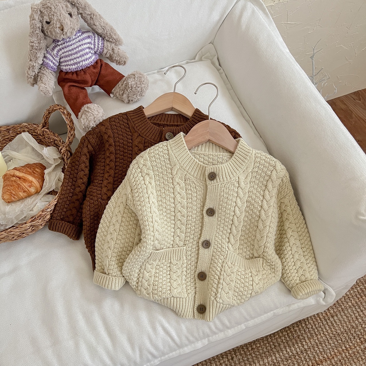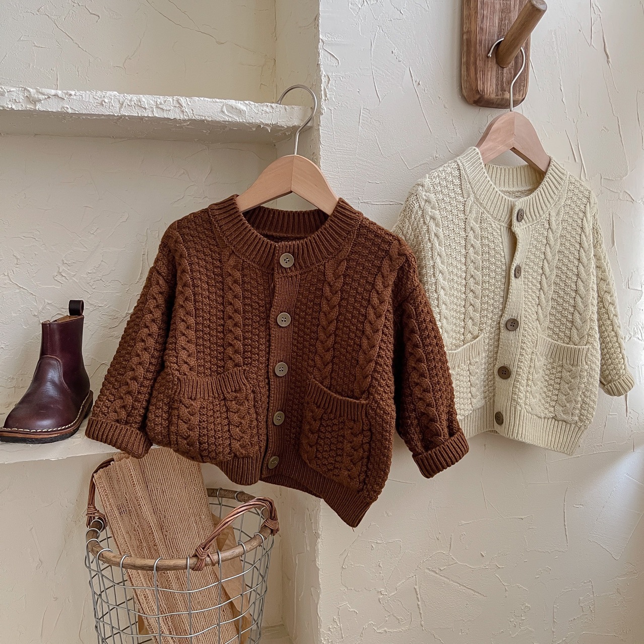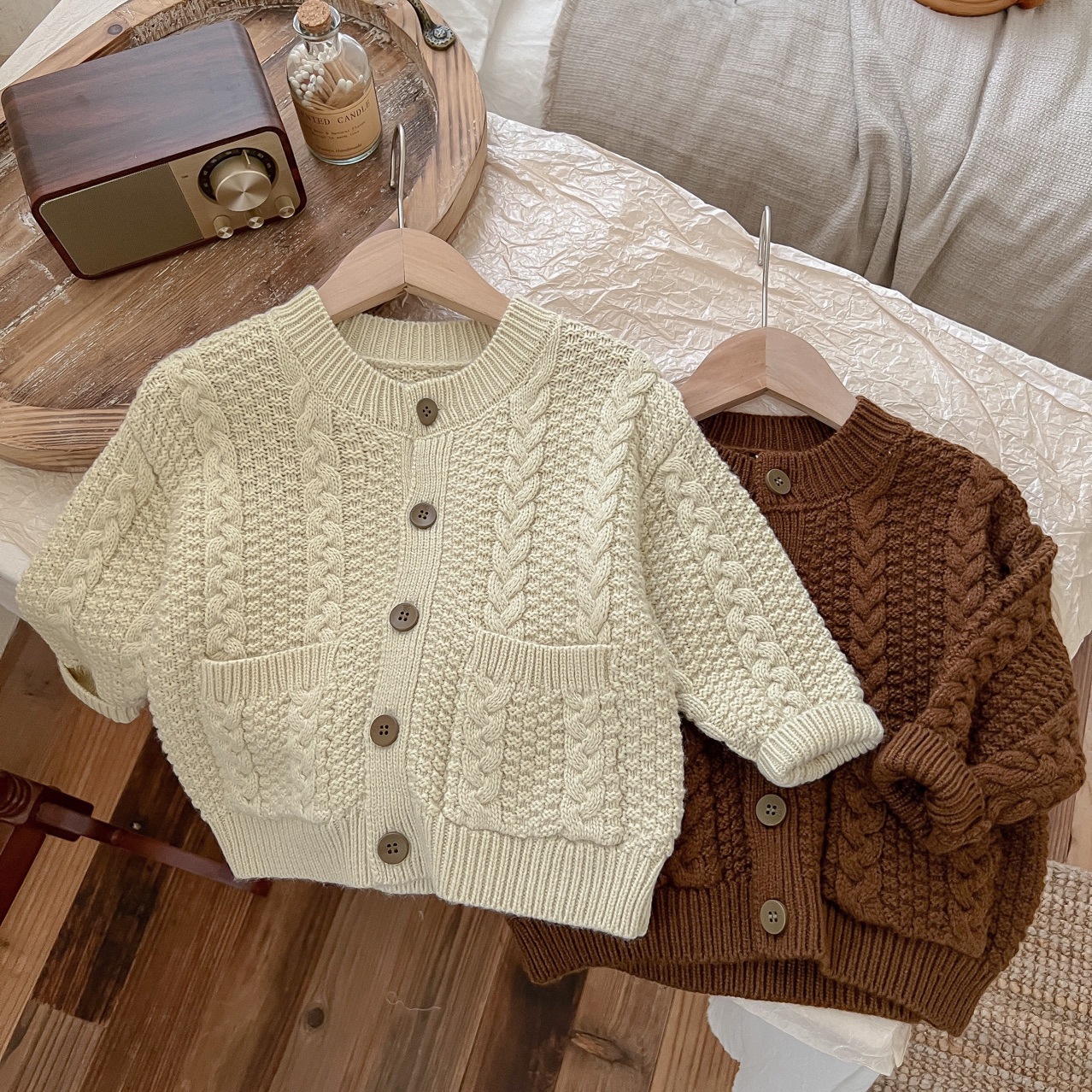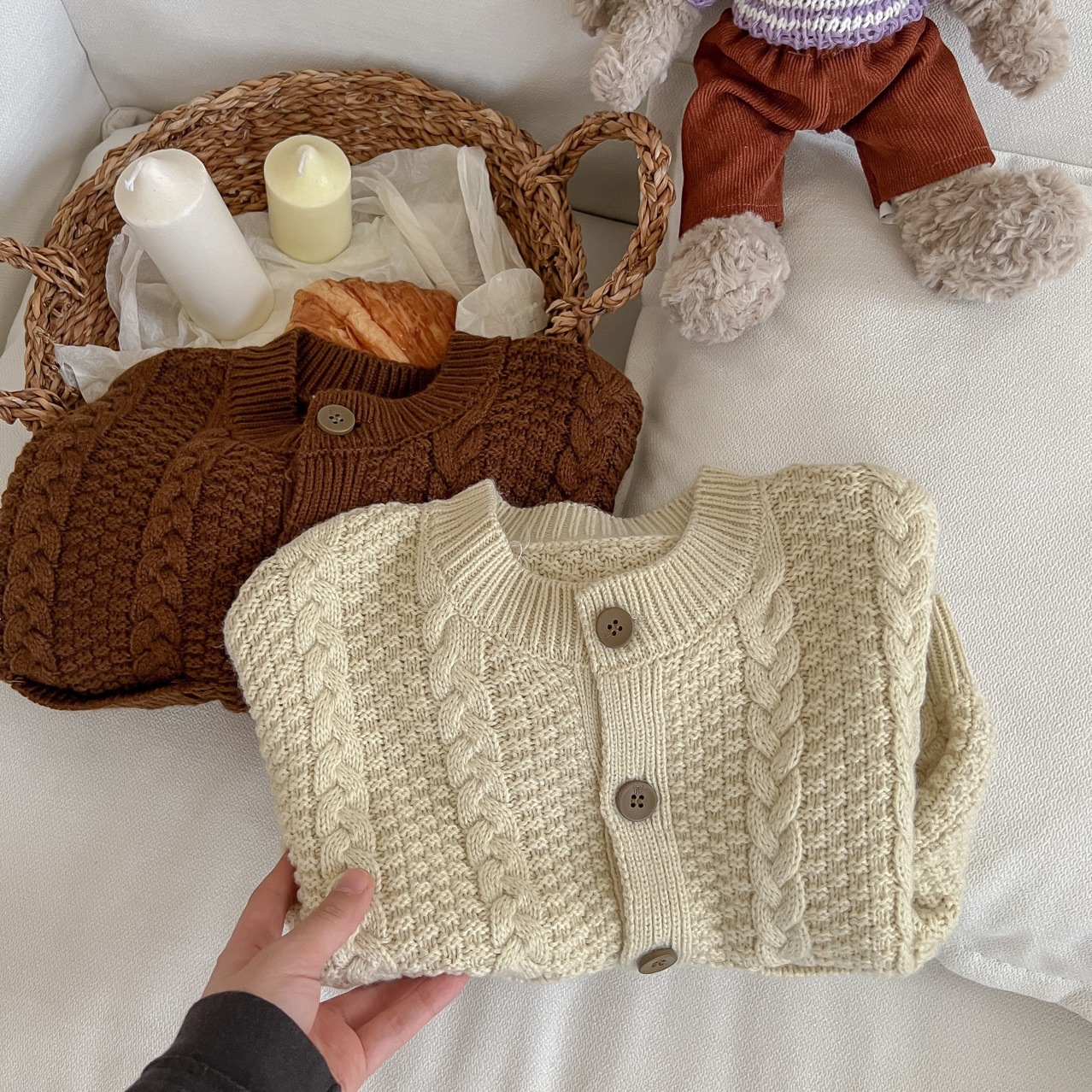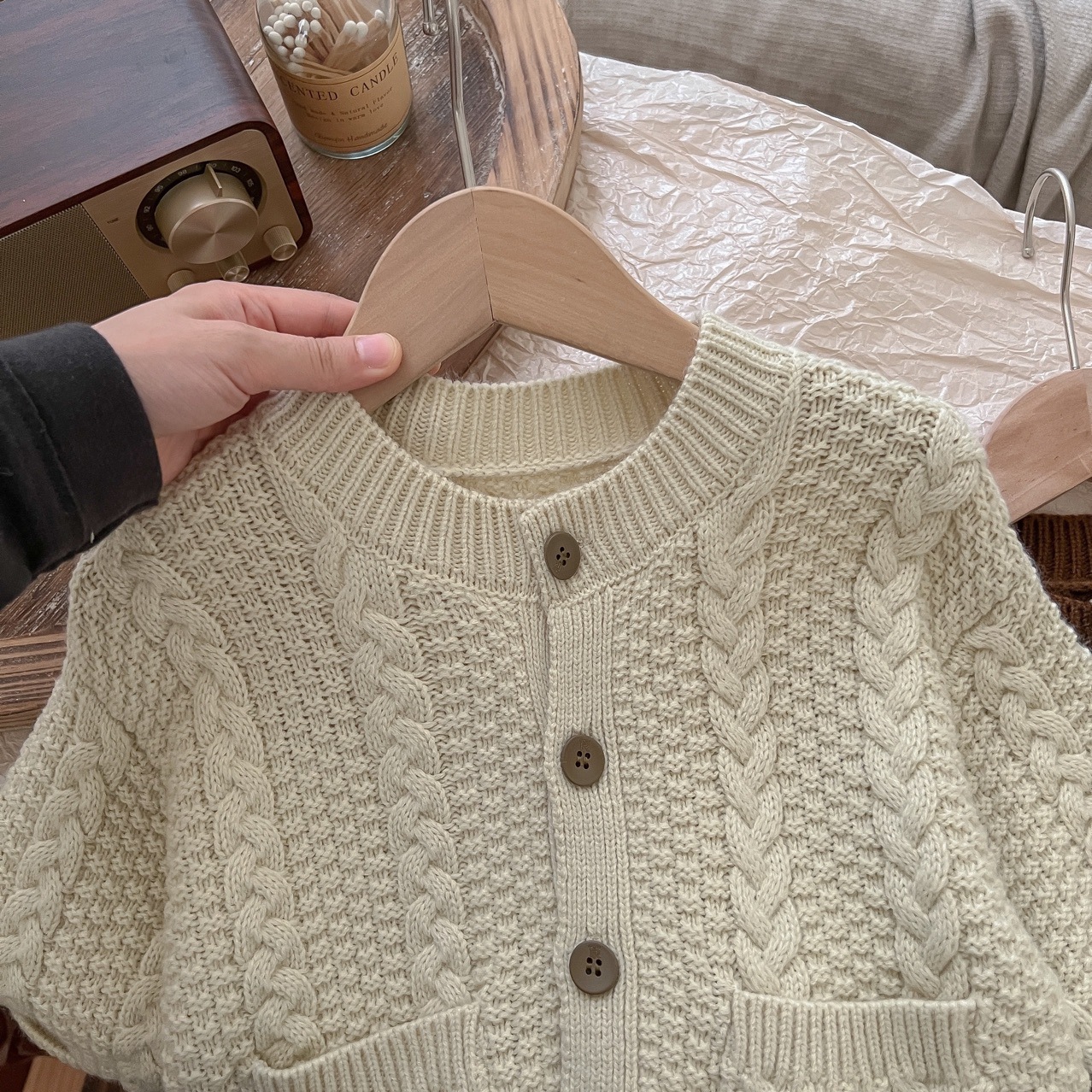 2025 가을 신상품 어린이 트위스트 스웨터 가디건 상의 남녀 아기용 숲풍 레트로 코트 스웨터 한국스토어 가기