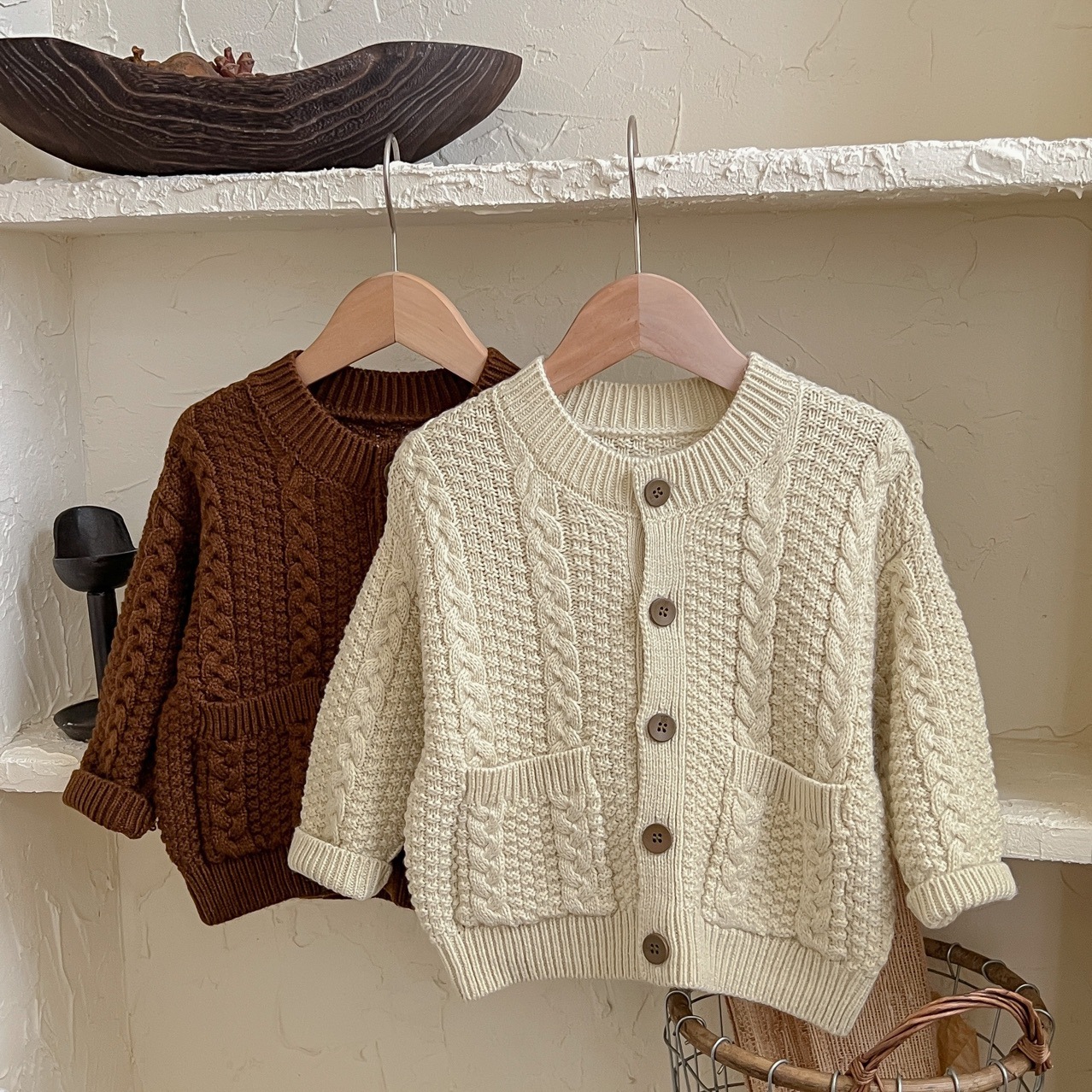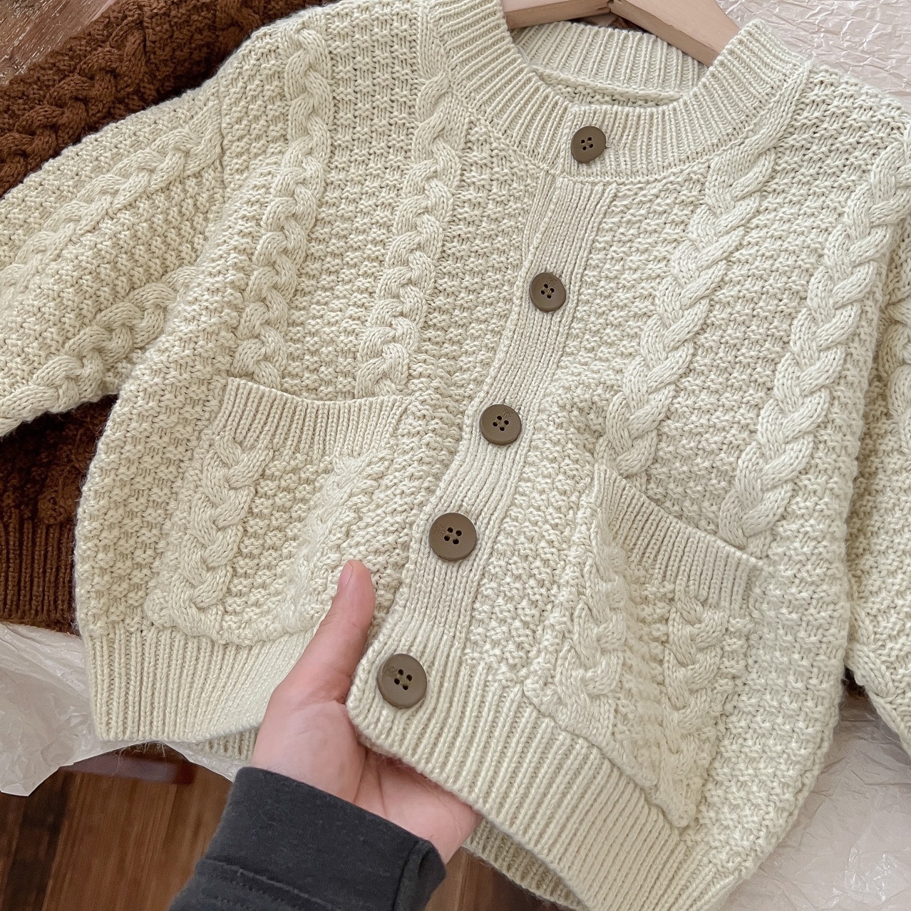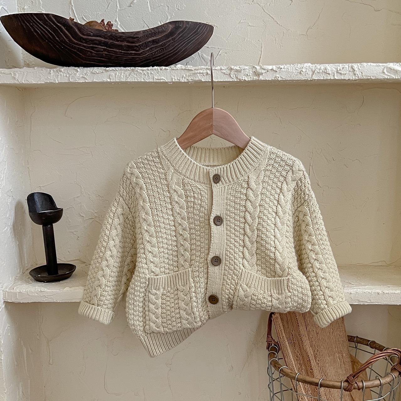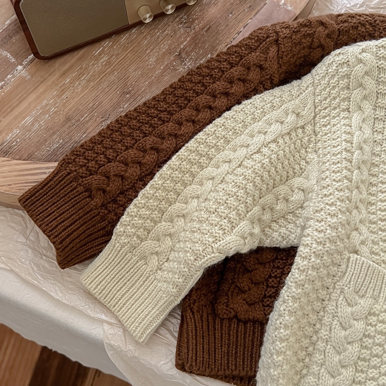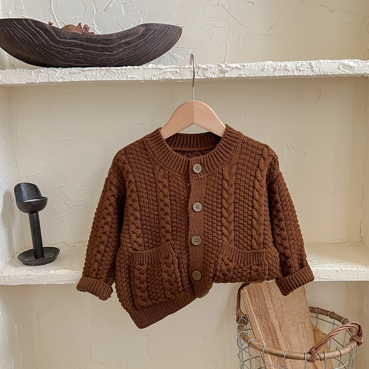 2025 가을 신상품 어린이 트위스트 스웨터 가디건 상의 남녀 아기용 숲풍 레트로 코트 스웨터 한국스토어 가기