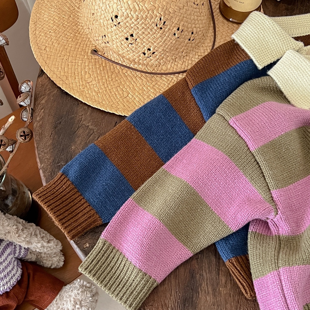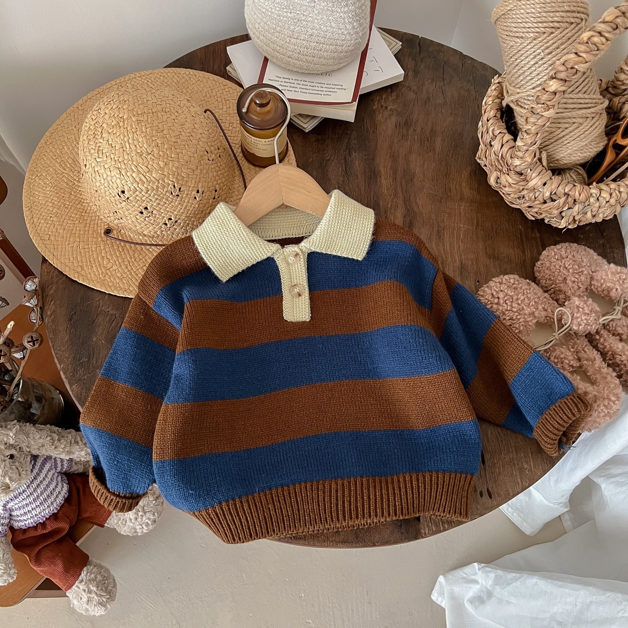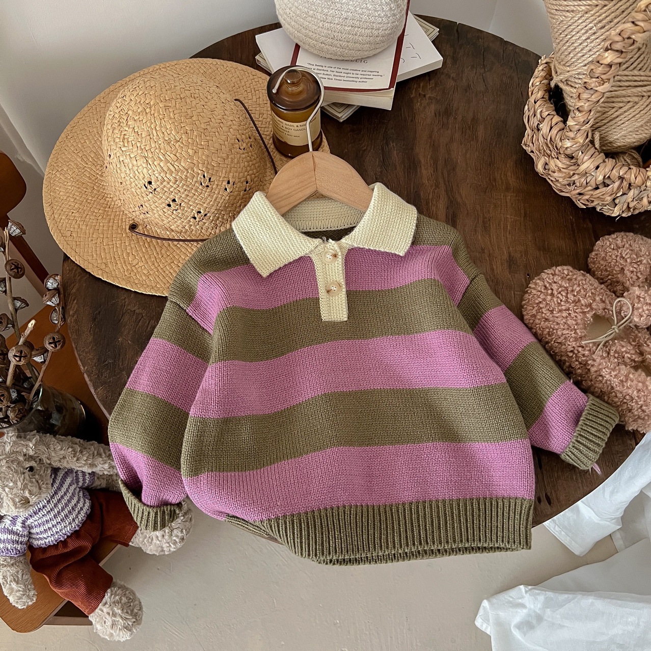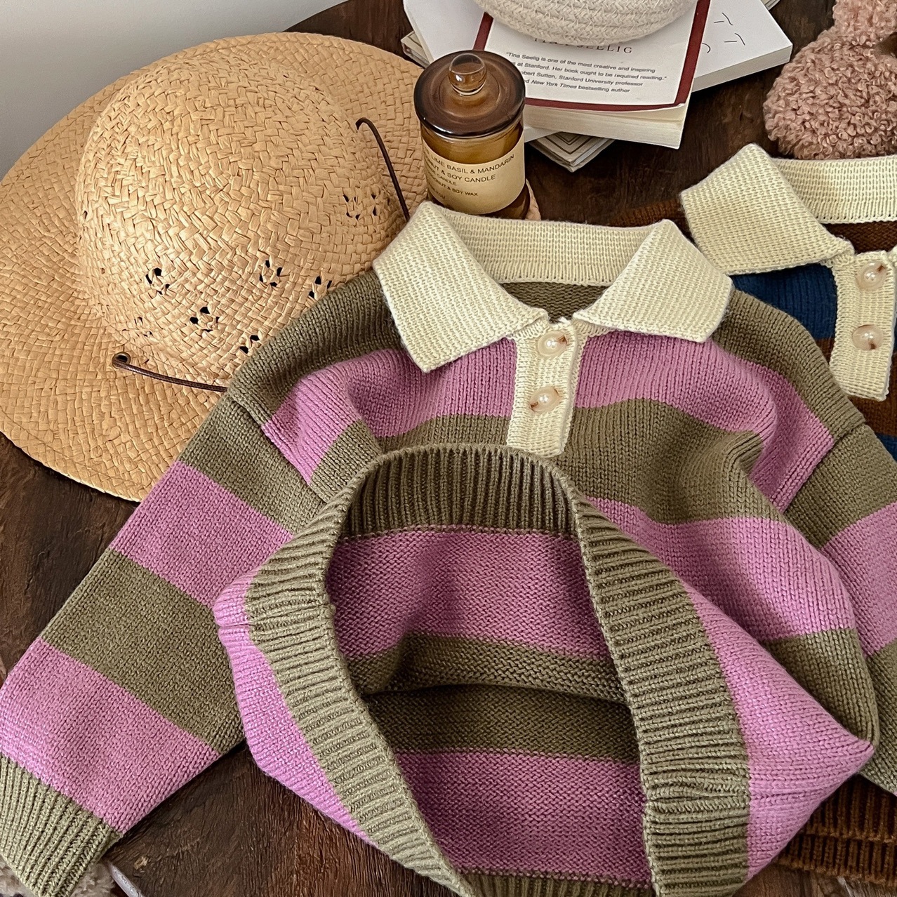Mi Yaduo 한국식 아동 스웨터 남아 니트 스웨터 여아 코트 베이비 스트라이프 라펠 폴로 셔츠 봄과 가을