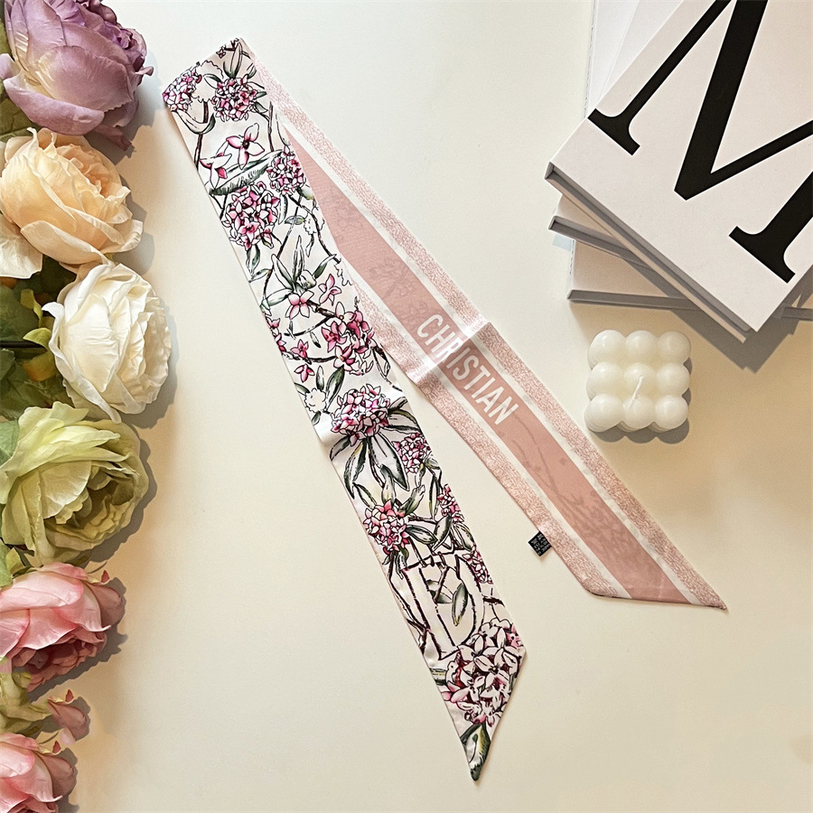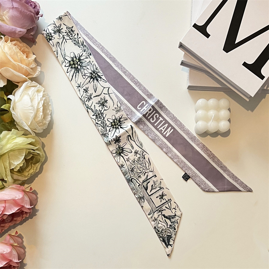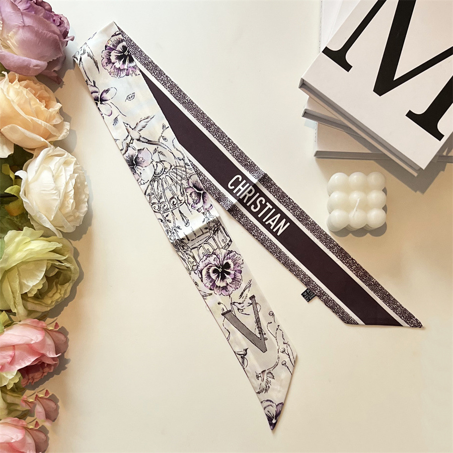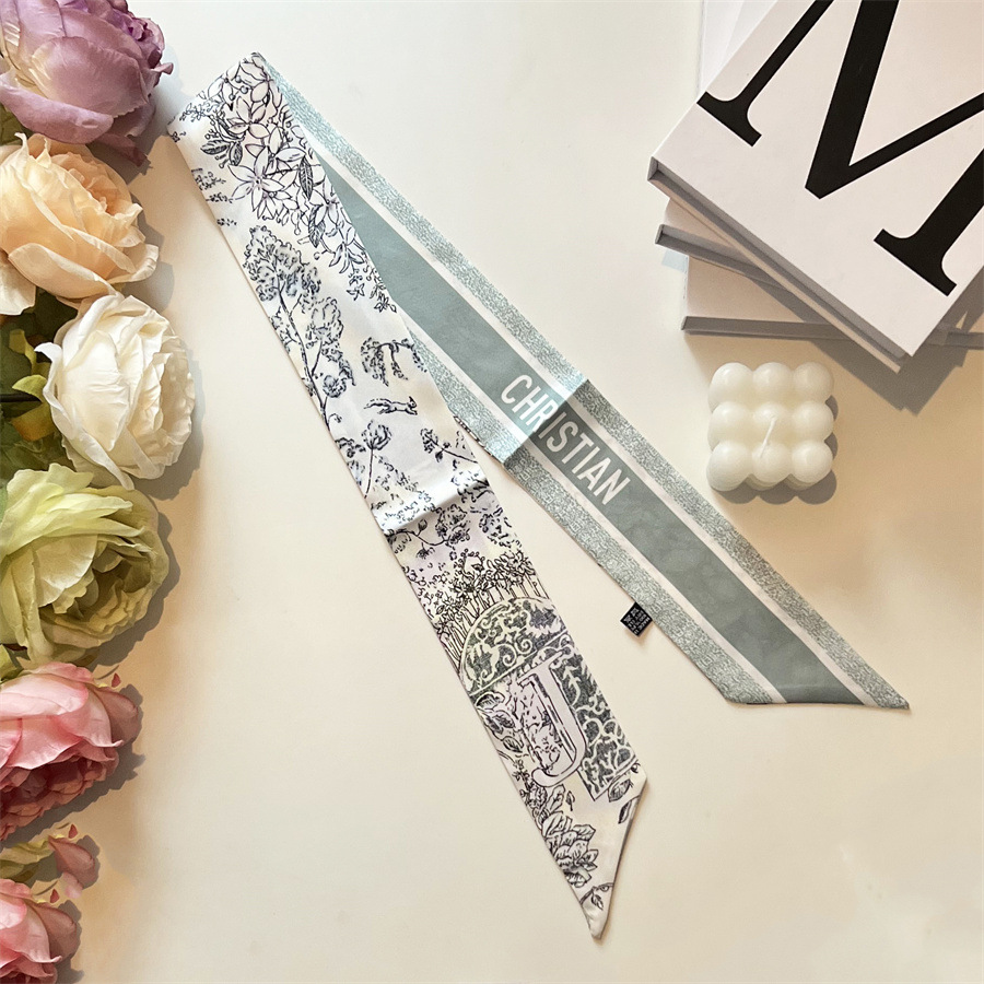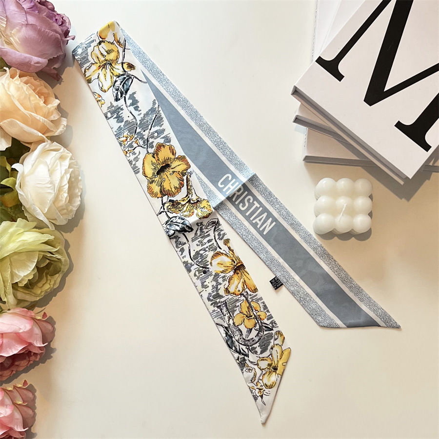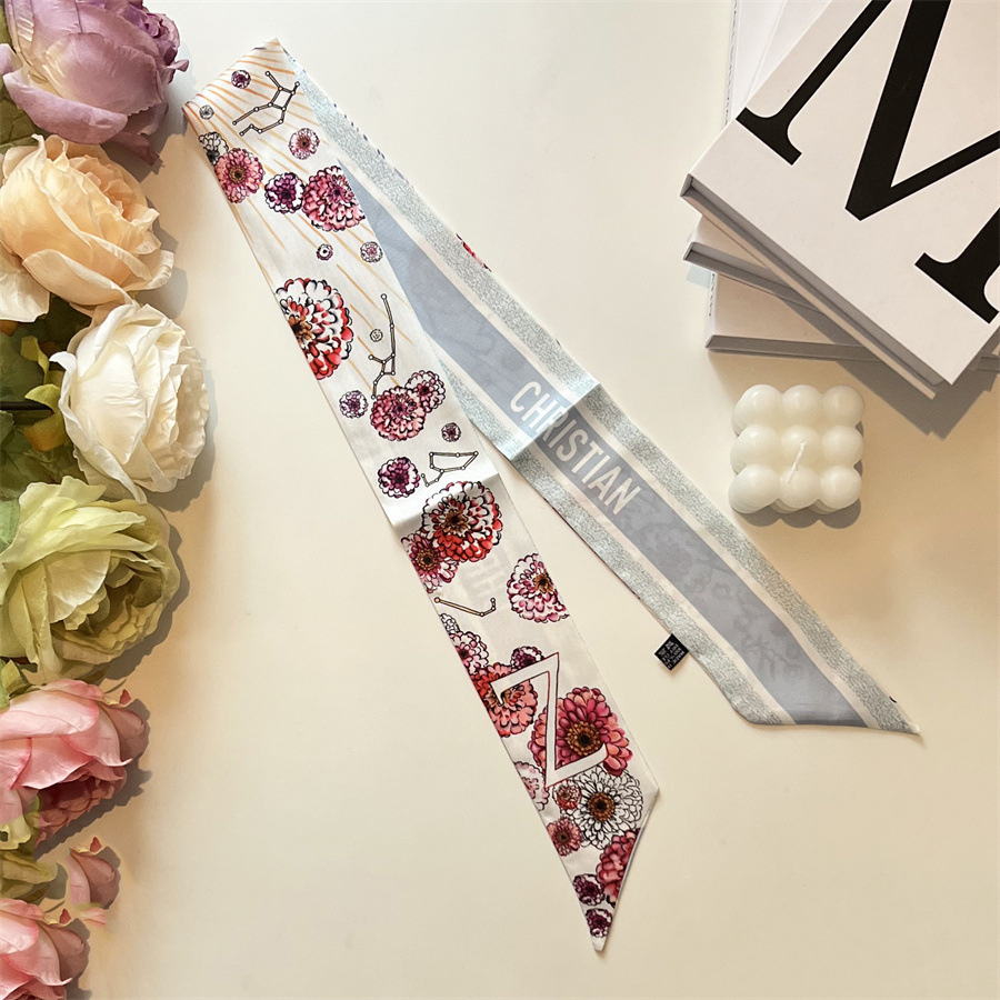 2024 이른 봄 새로운 26 편지 실크 프랑스 스타일 복고풍 인쇄 여름 실크 스카프 장식 머리 벨트 인터넷 연예인 리본스토어 가기