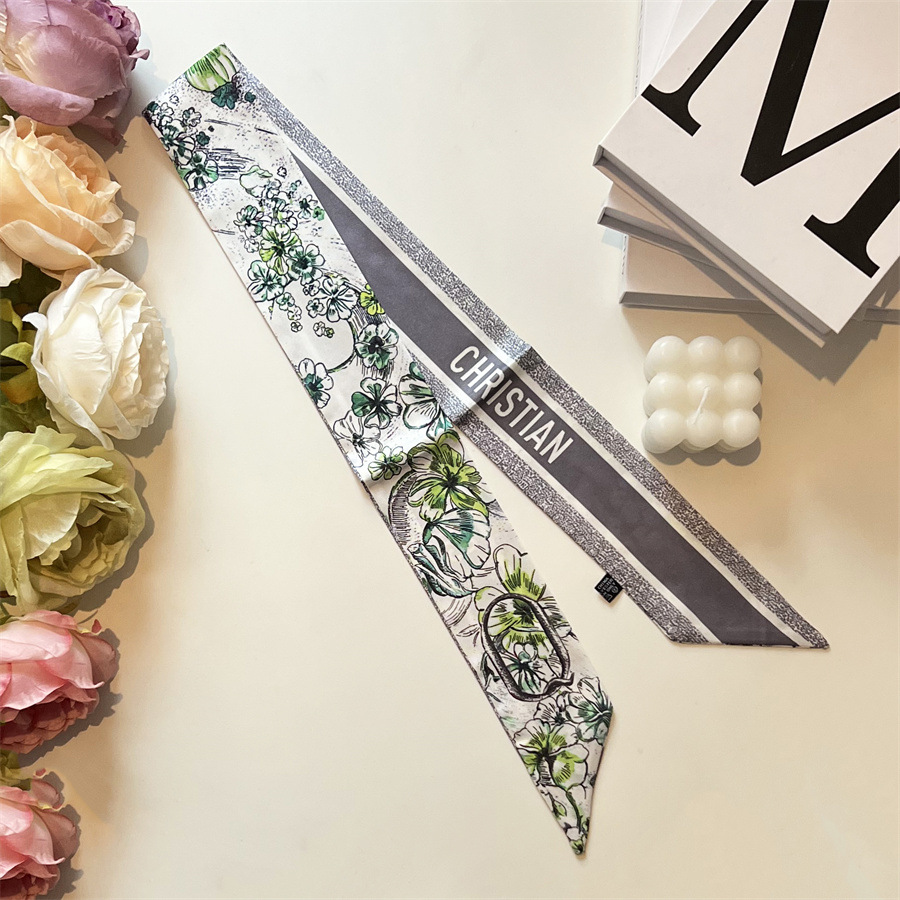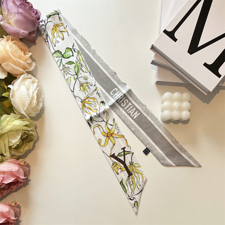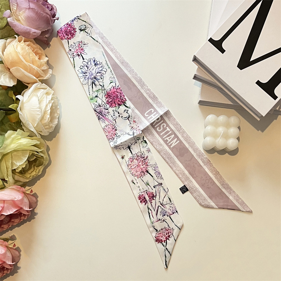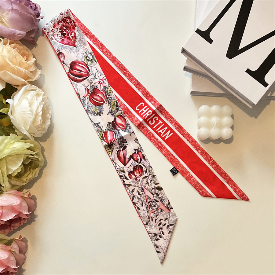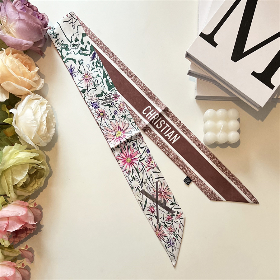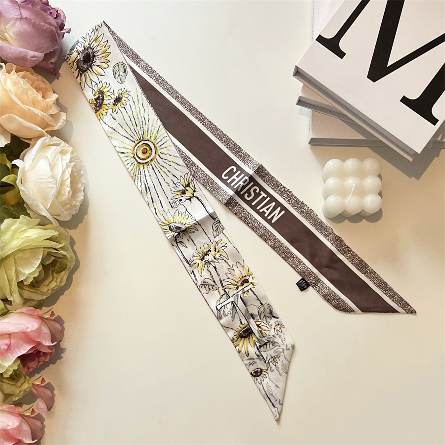 2024 이른 봄 새로운 26 편지 실크 프랑스 스타일 복고풍 인쇄 여름 실크 스카프 장식 머리 벨트 인터넷 연예인 리본스토어 가기