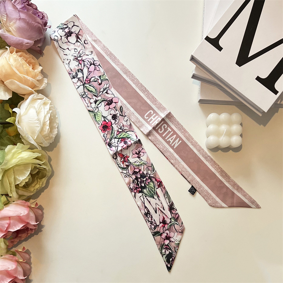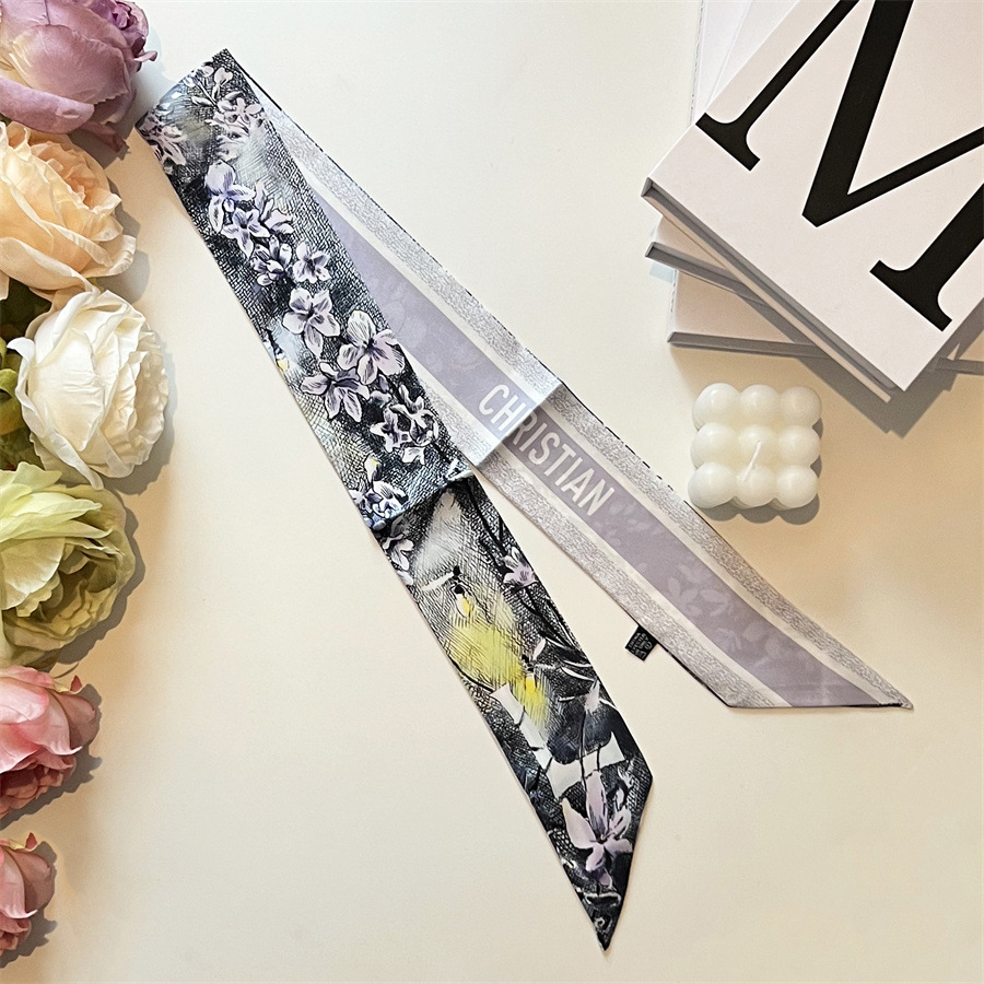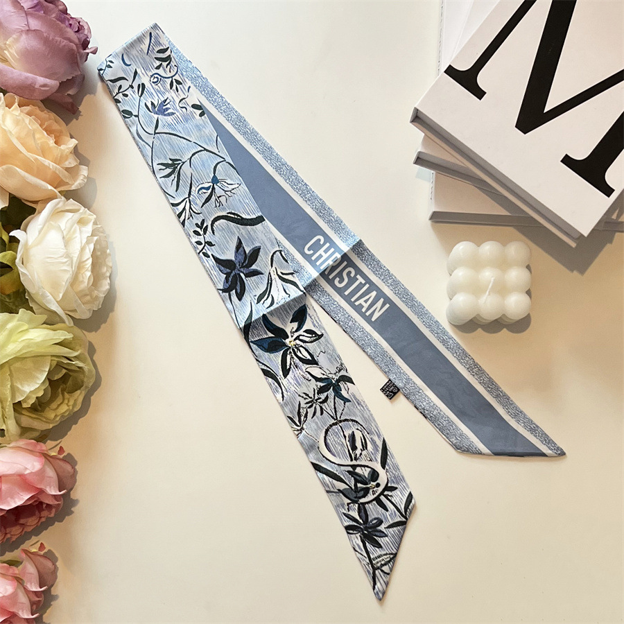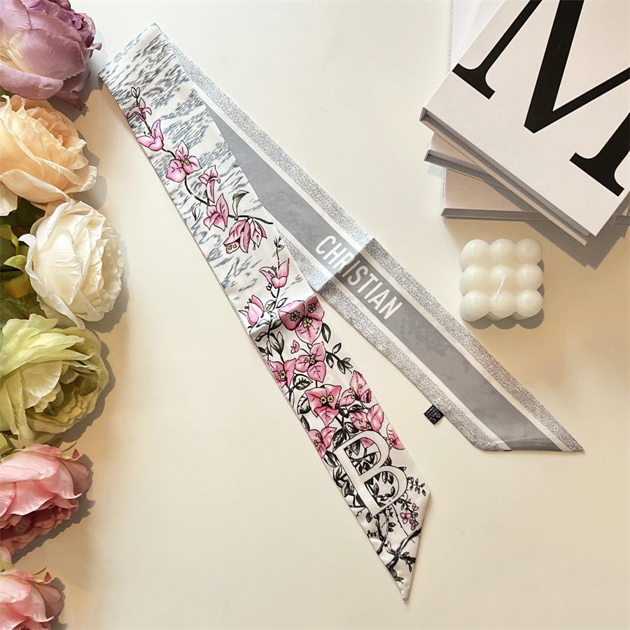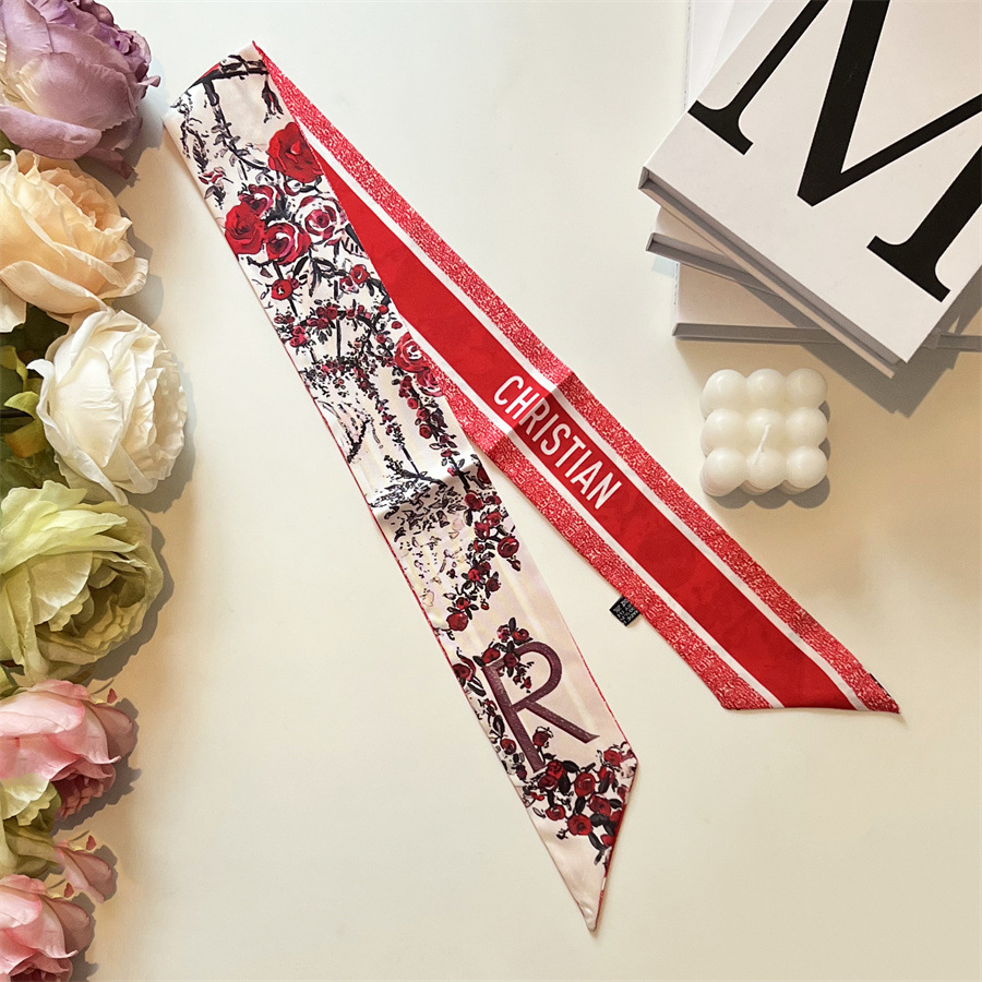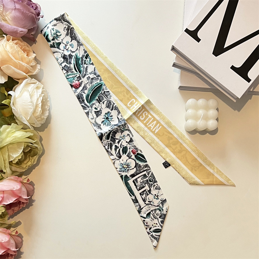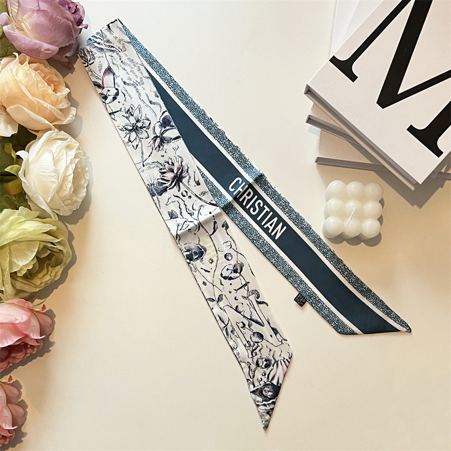 2024 이른 봄 새로운 26 편지 실크 프랑스 스타일 복고풍 인쇄 여름 실크 스카프 장식 머리 벨트 인터넷 연예인 리본스토어 가기