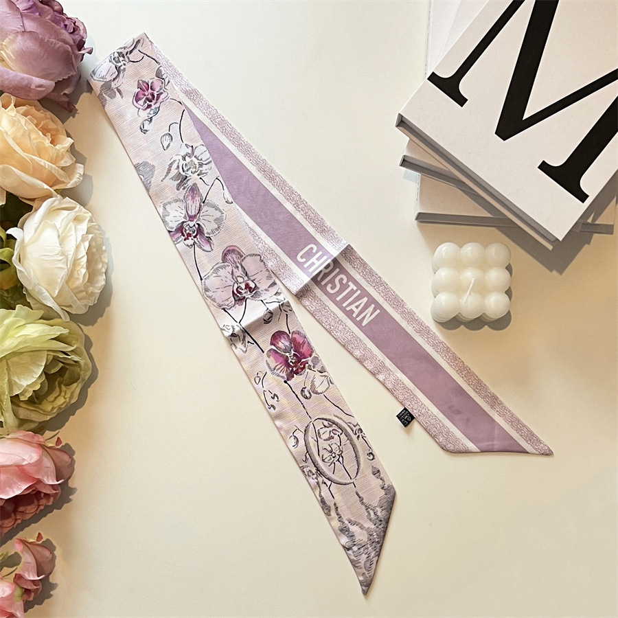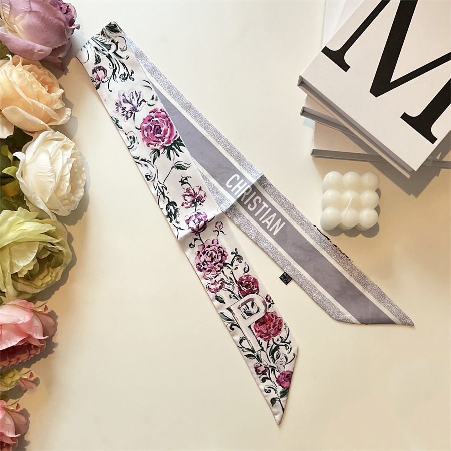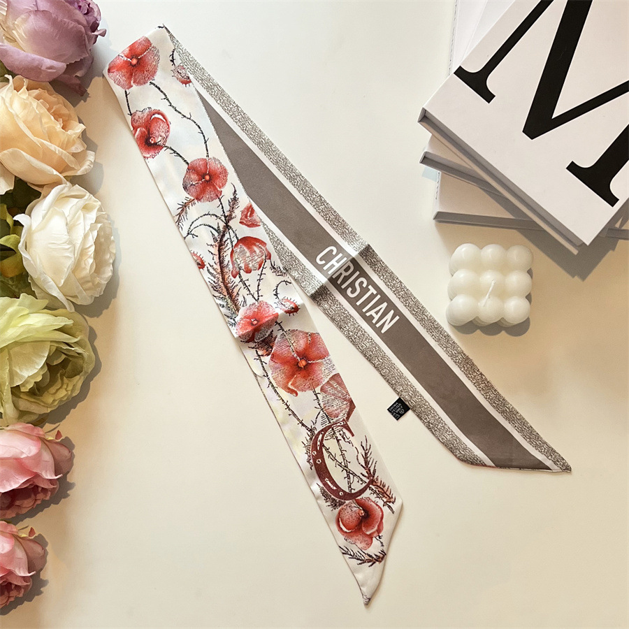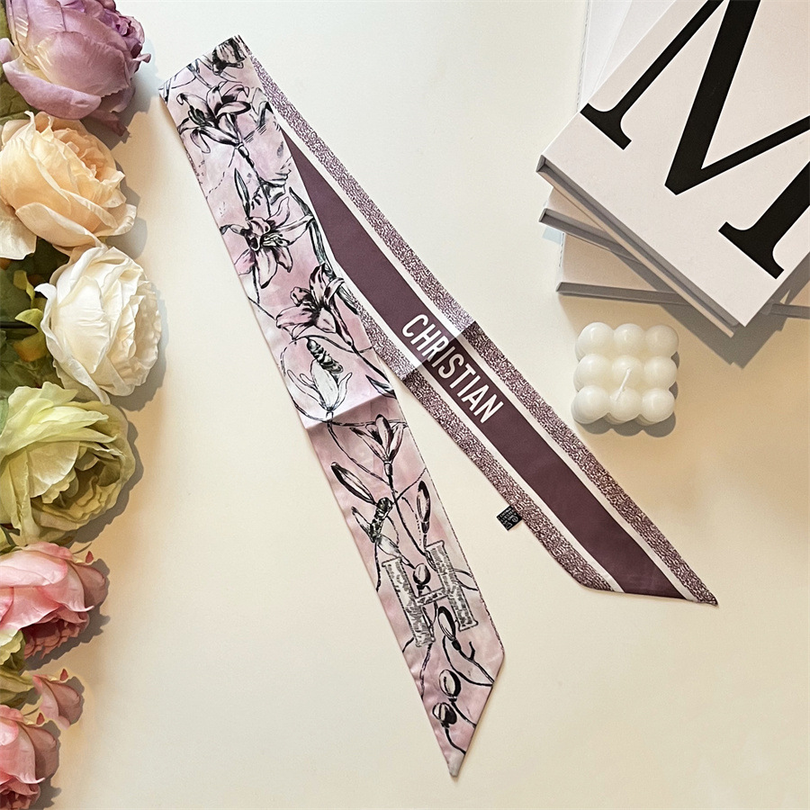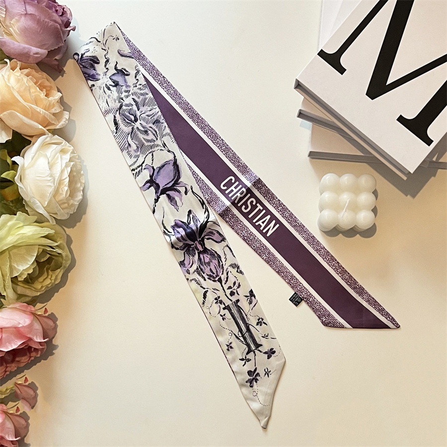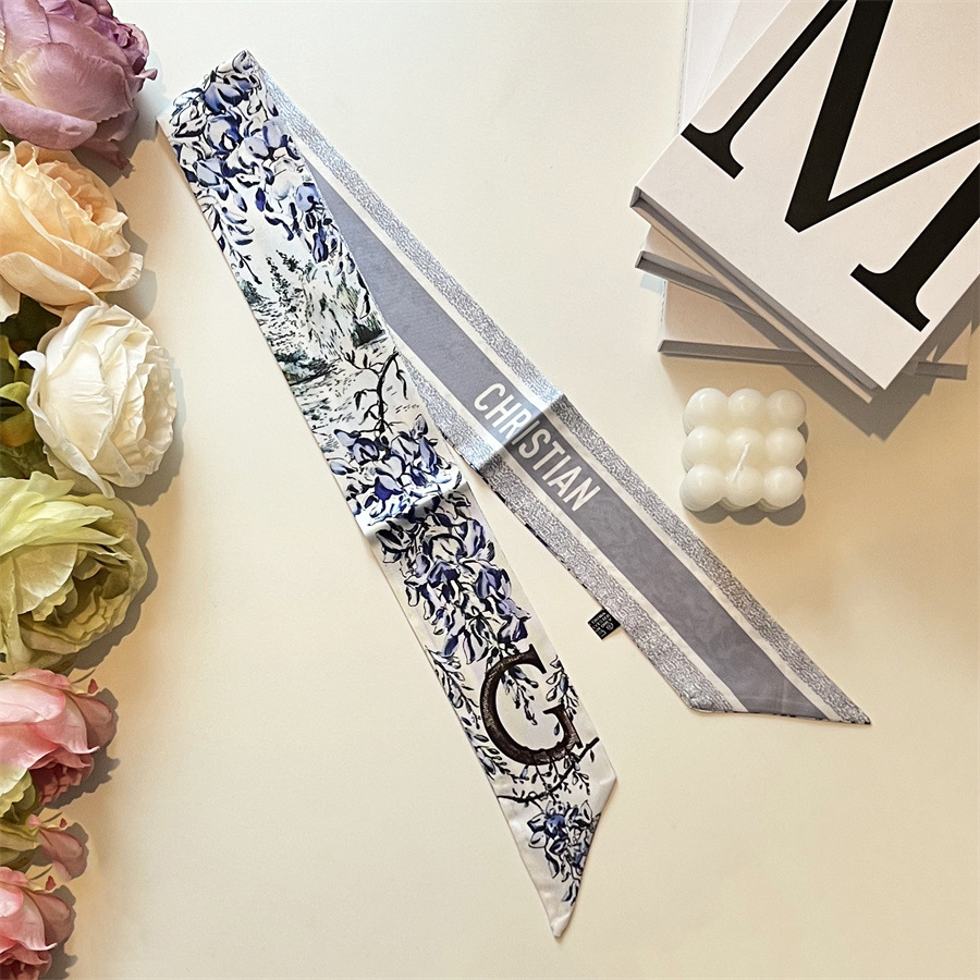2024 이른 봄 새로운 26 편지 실크 프랑스 스타일 복고풍 인쇄 여름 실크 스카프 장식 머리 벨트 인터넷 연예인 리본스토어 가기