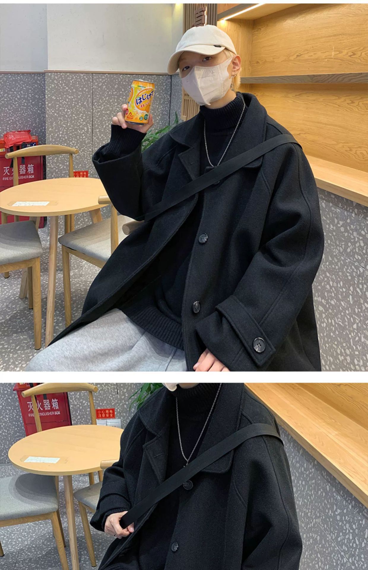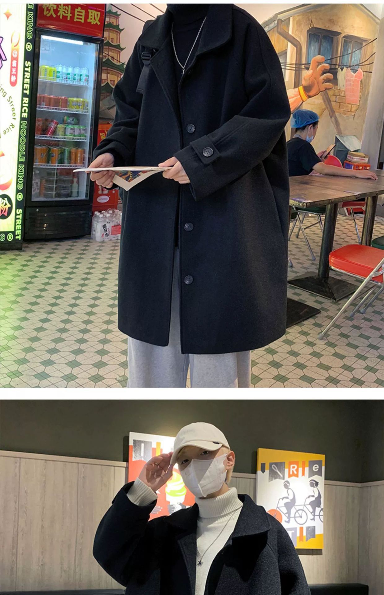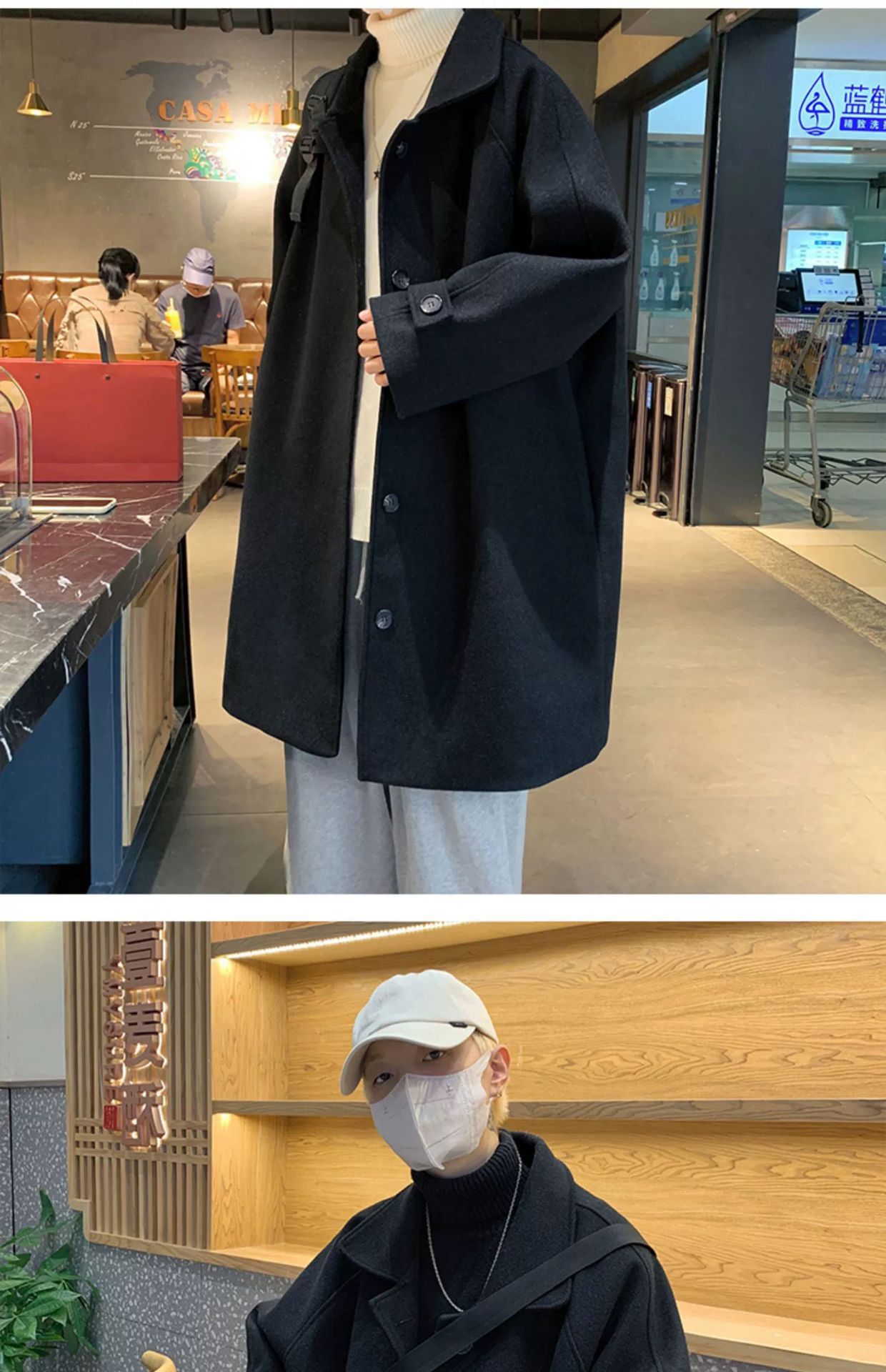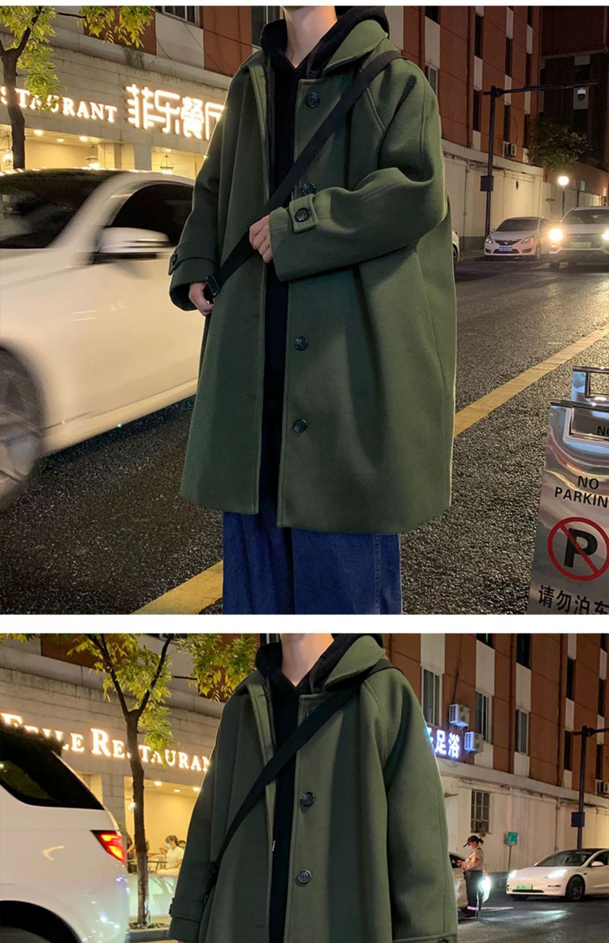 모직 코트 남성 겨울 새로운 한국 스타일의 트렌디 솔리드 컬러 핸섬 모직 코트 커플 만능 캐주얼 재킷