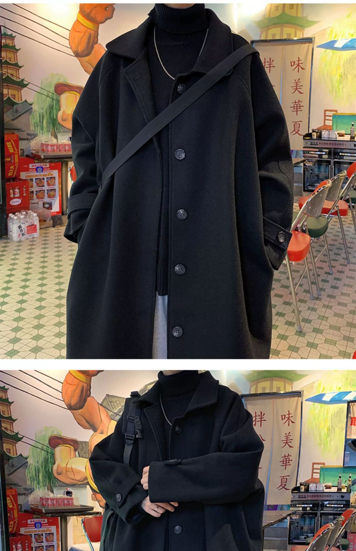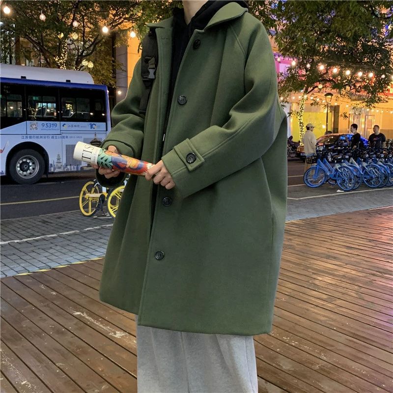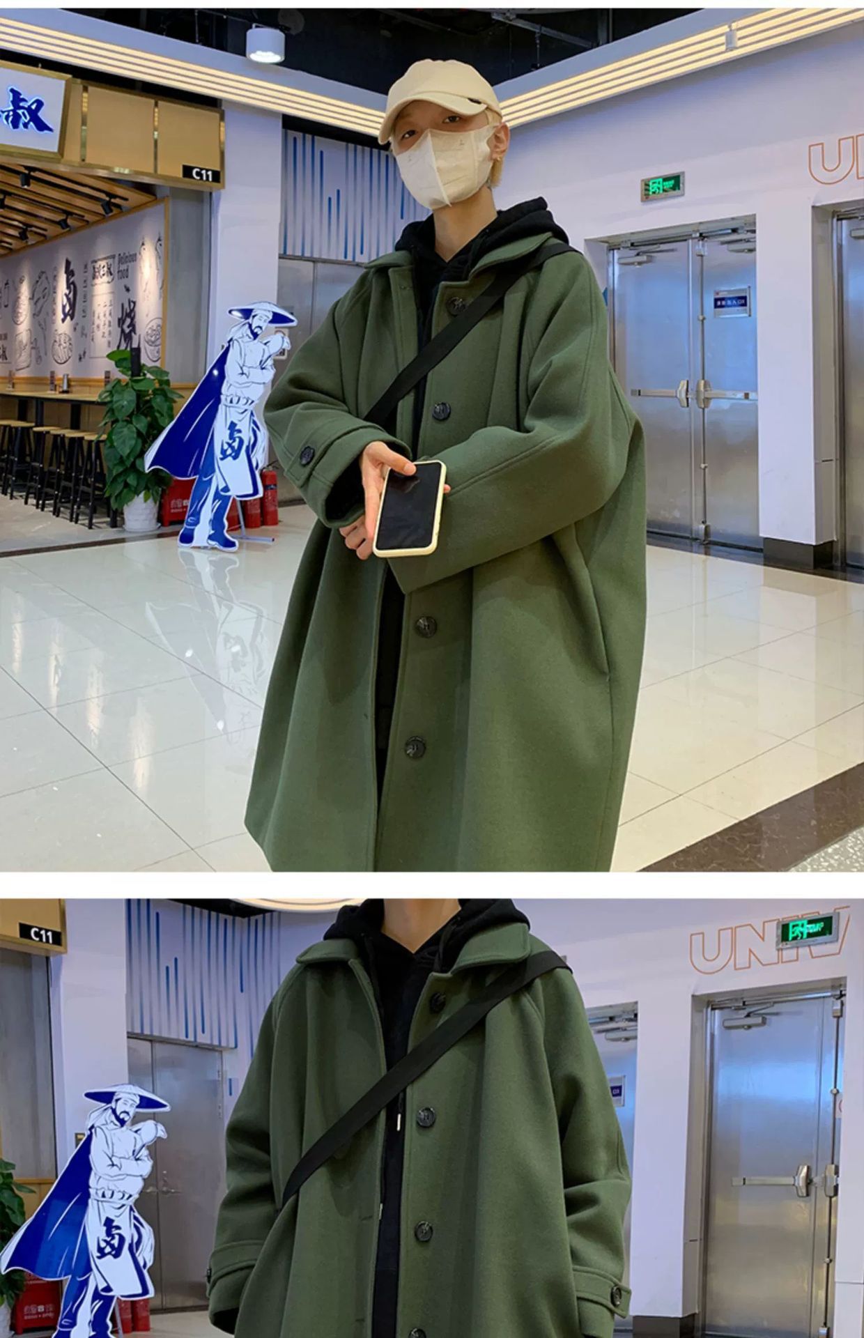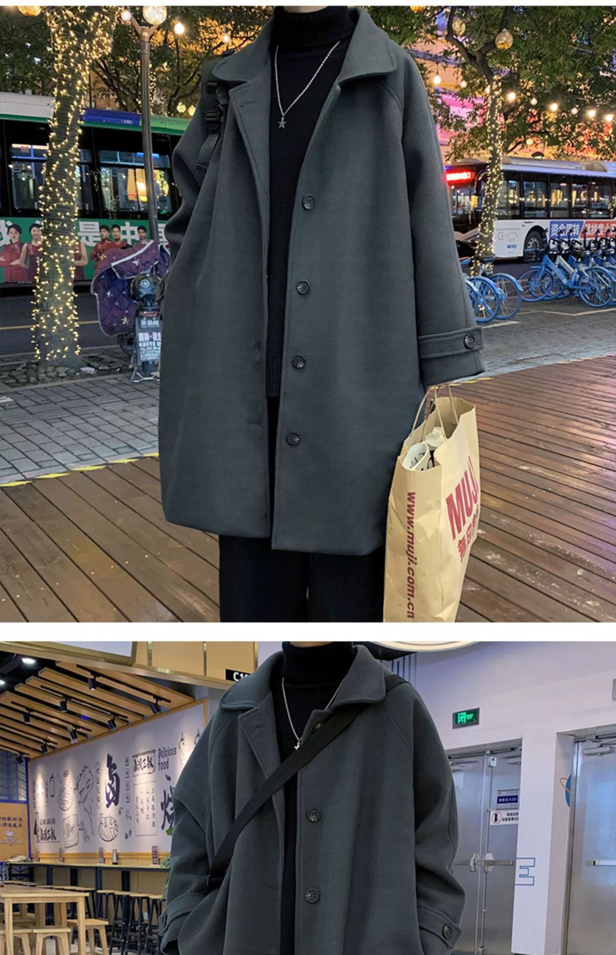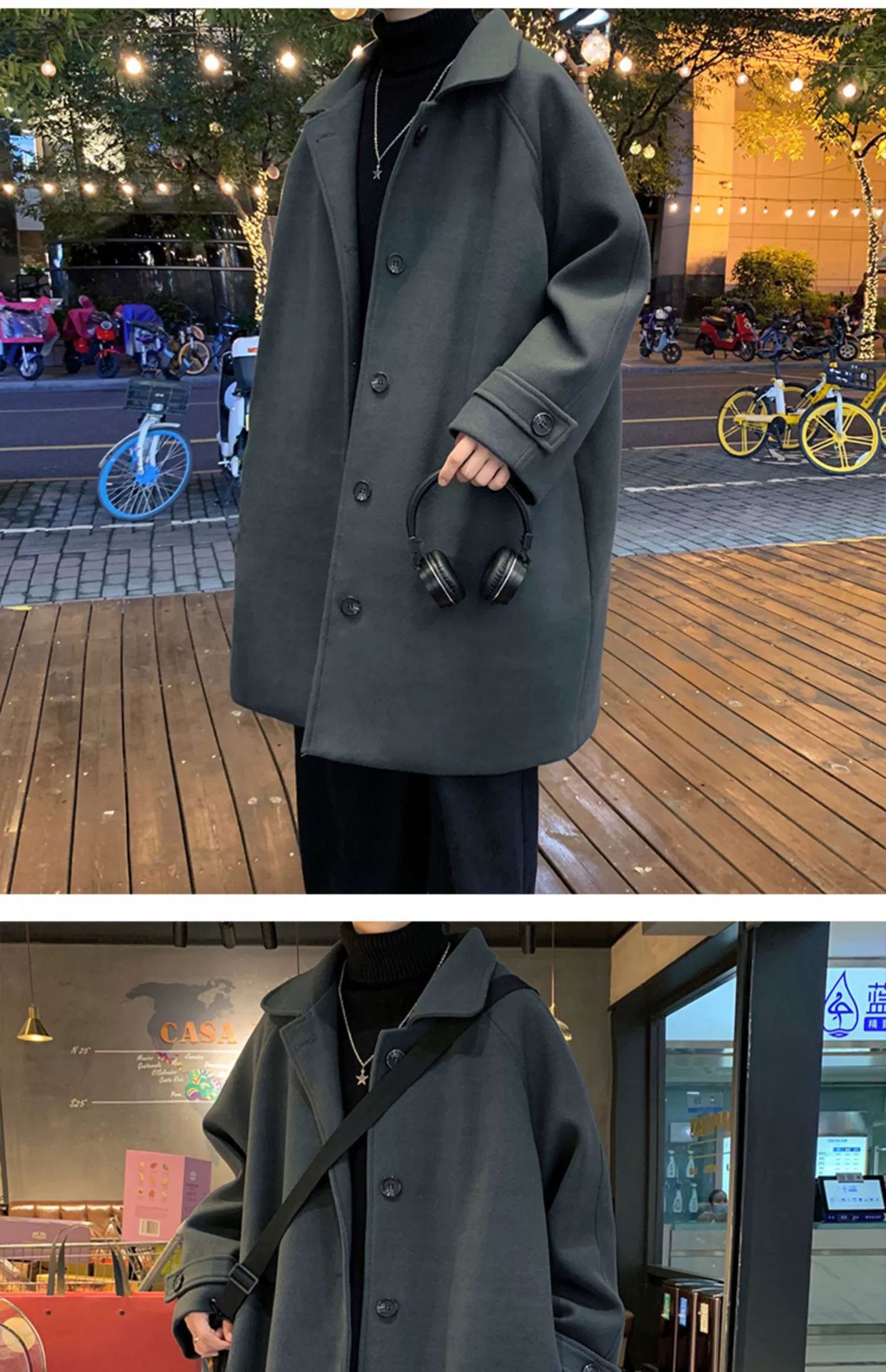 모직 코트 남성 겨울 새로운 한국 스타일의 트렌디 솔리드 컬러 핸섬 모직 코트 커플 만능 캐주얼 재킷