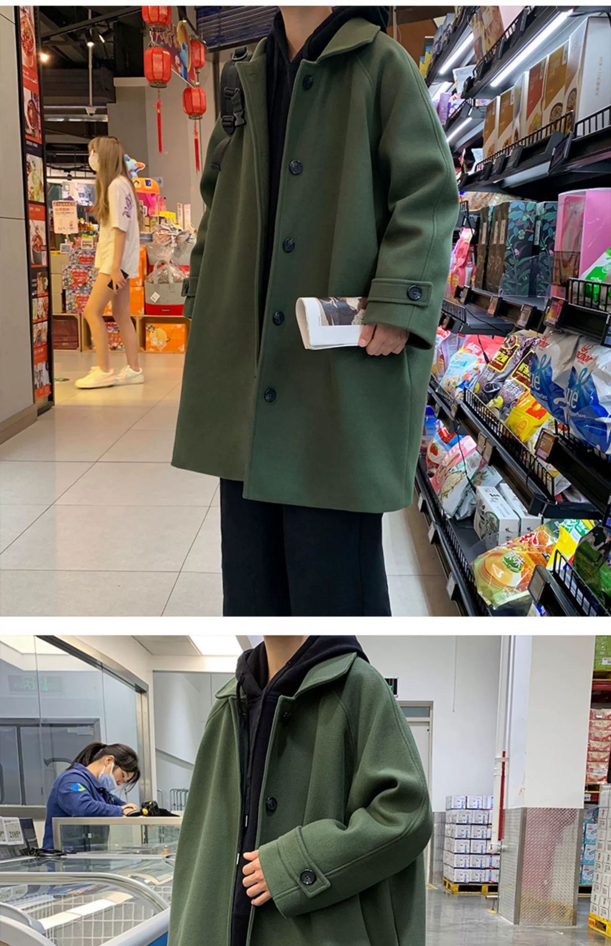 모직 코트 남성 겨울 새로운 한국 스타일의 트렌디 솔리드 컬러 핸섬 모직 코트 커플 만능 캐주얼 재킷스토어 가기