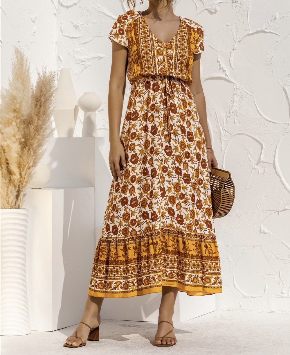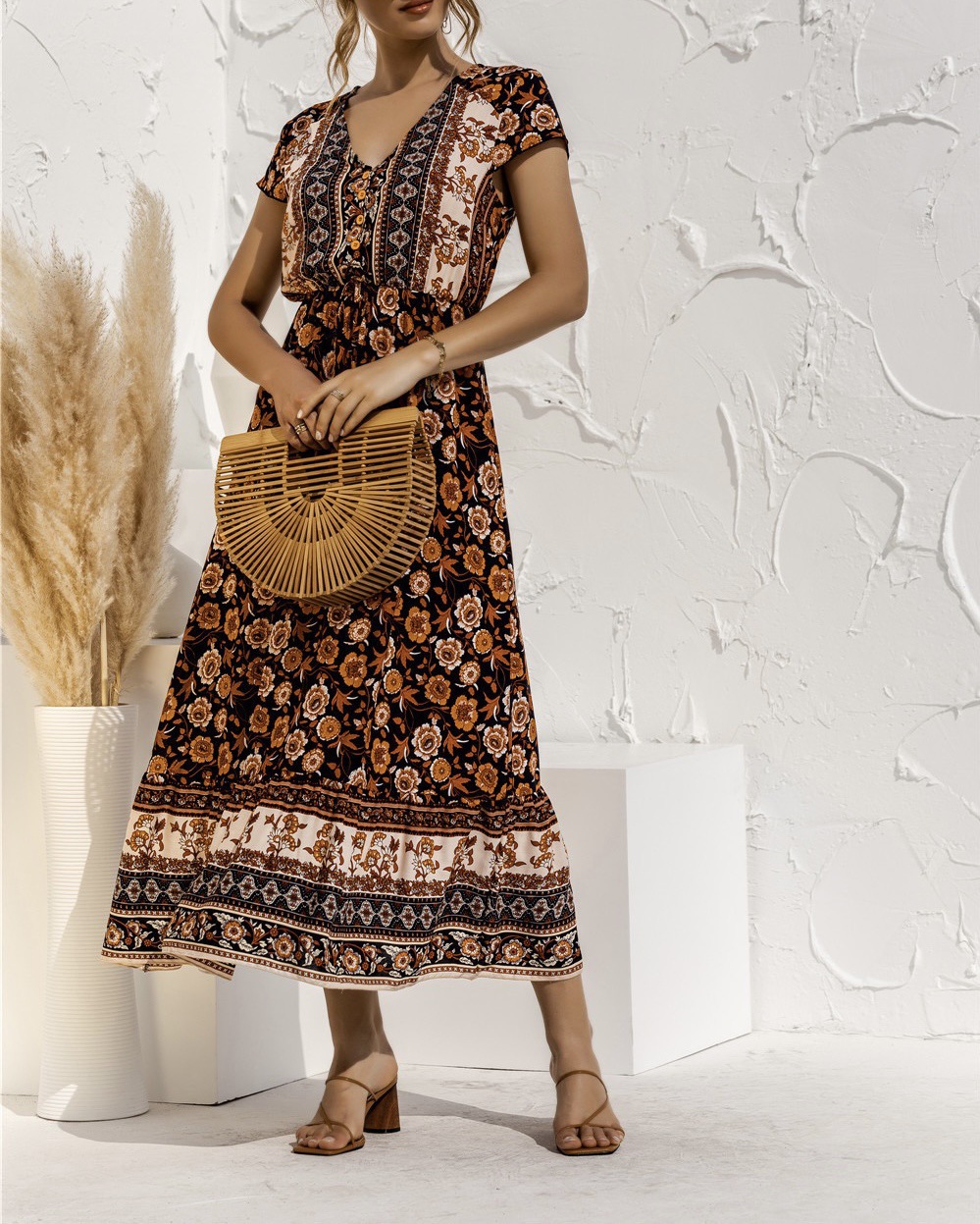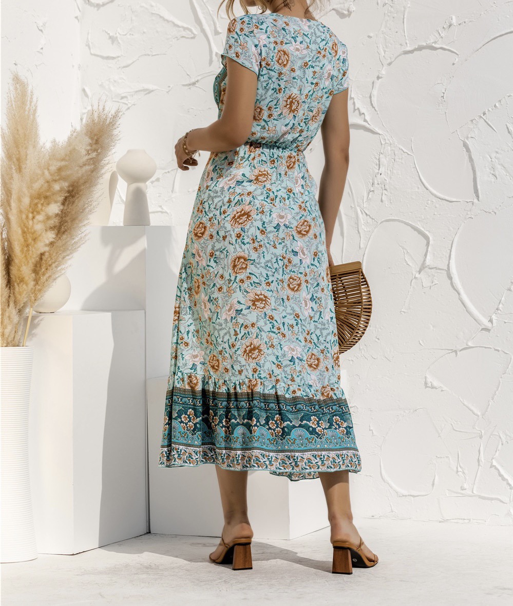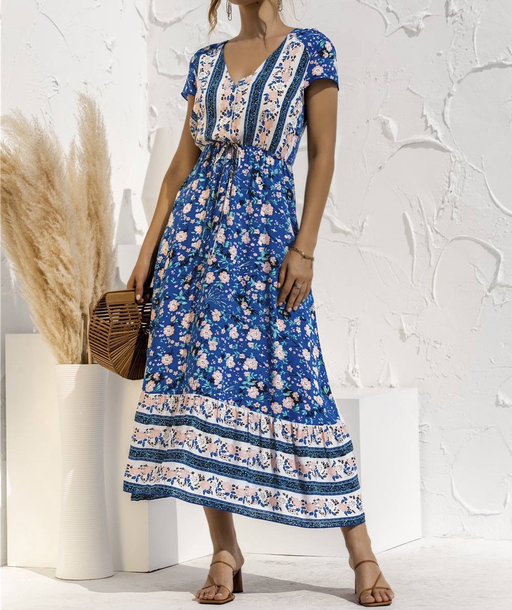 봄/여름 2023 크로스 보더 eaby 아마존 폭발 반팔 버튼 레이스 업 포지셔닝 꽃 모자이크 원피스 원피스스토어 가기