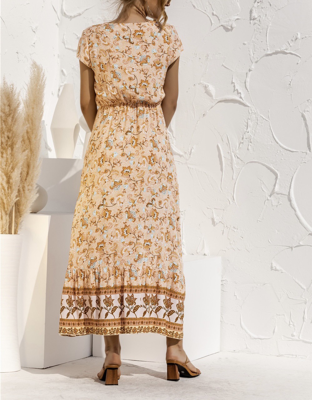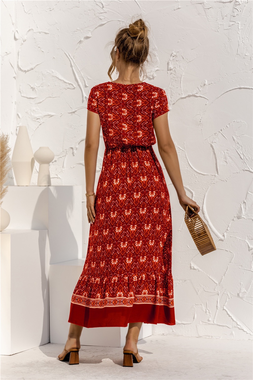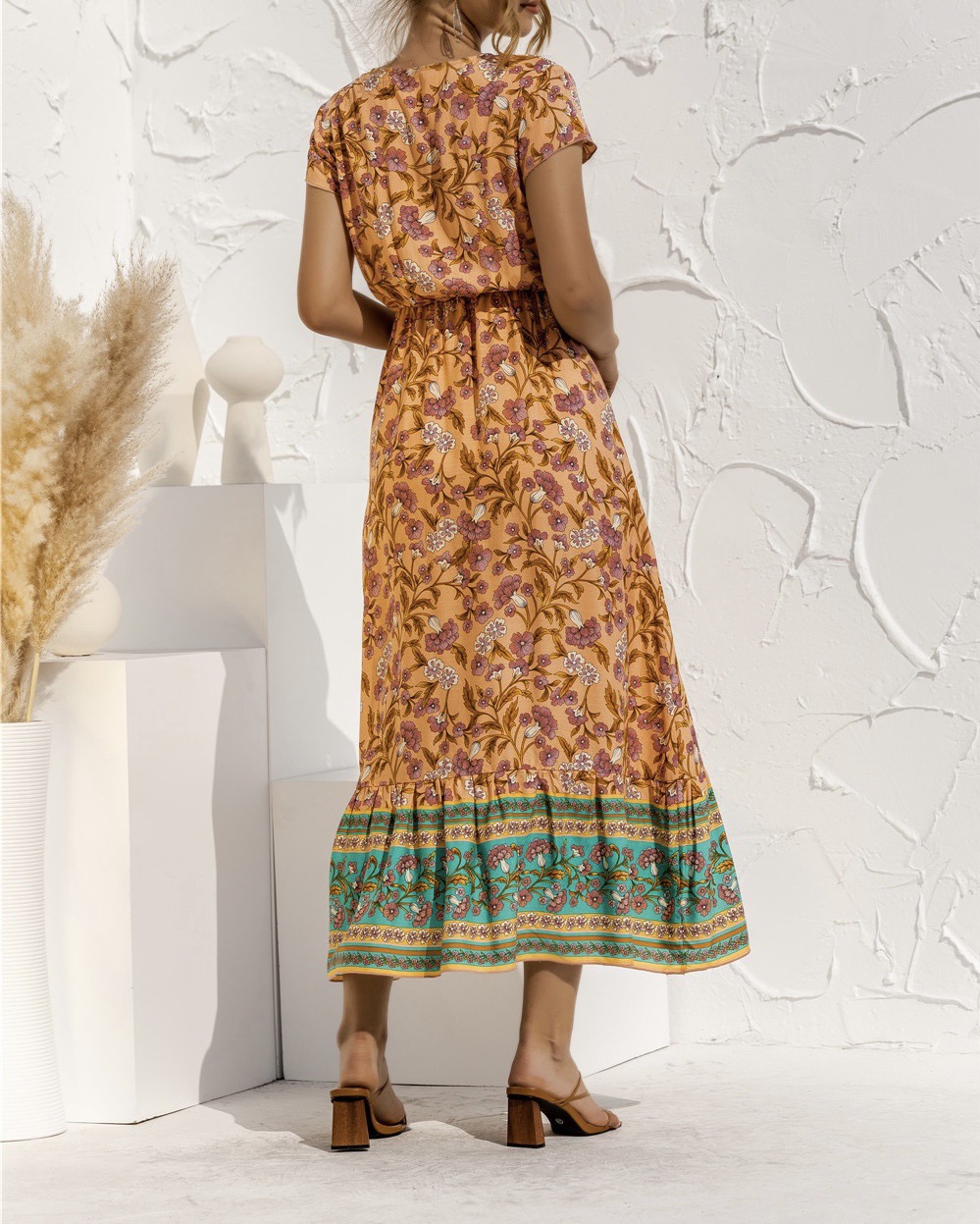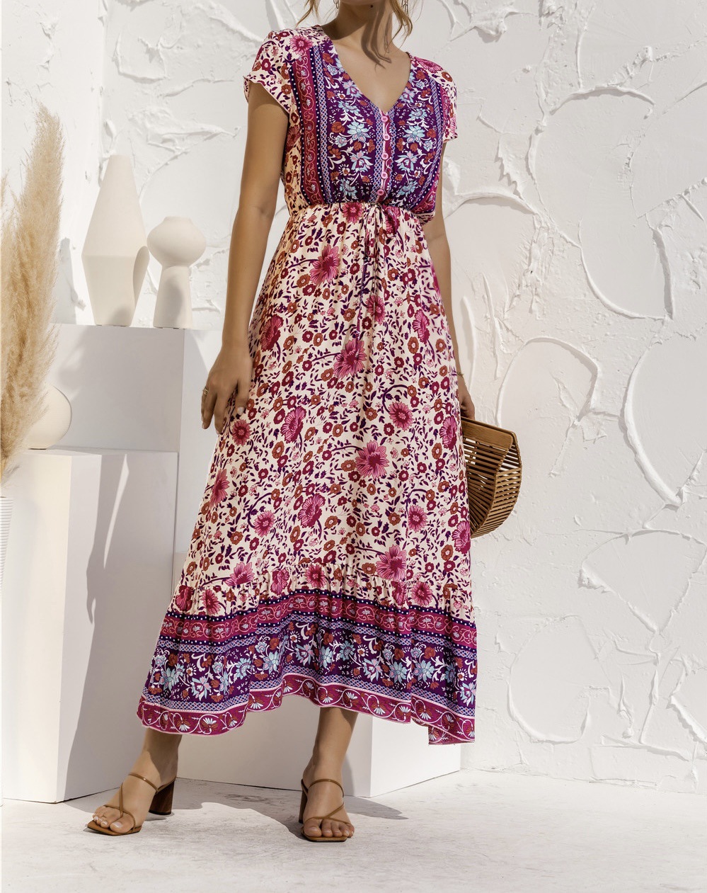 봄/여름 2023 크로스 보더 eaby 아마존 폭발 반팔 버튼 레이스 업 포지셔닝 꽃 모자이크 원피스 원피스