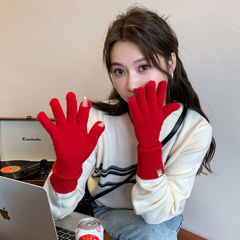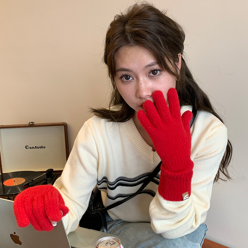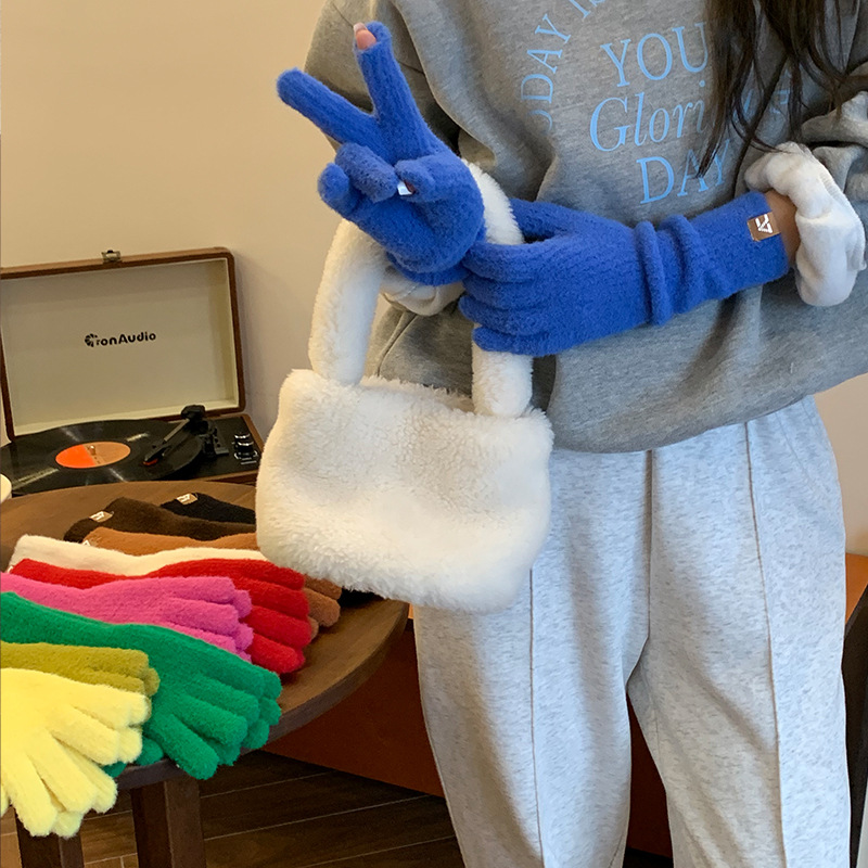 니트 조커 방한 따뜻한 장갑 겨울 패션 심플 솔리드 컬러 캐주얼 편안한 통기성 도파민 컬러 장갑스토어 가기