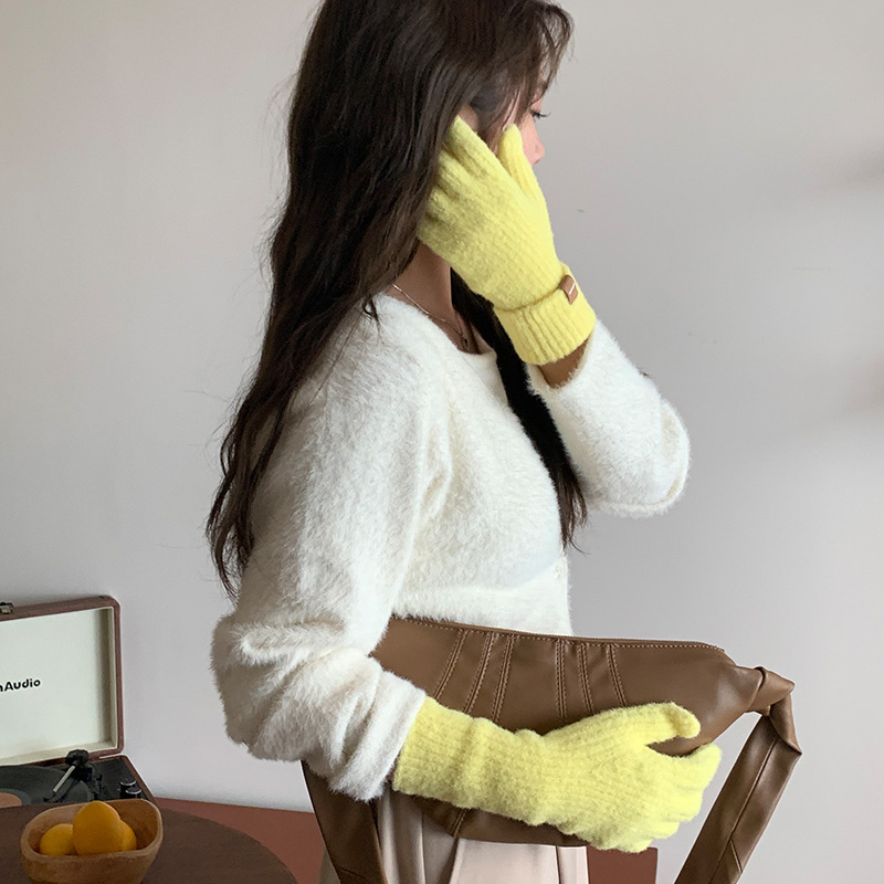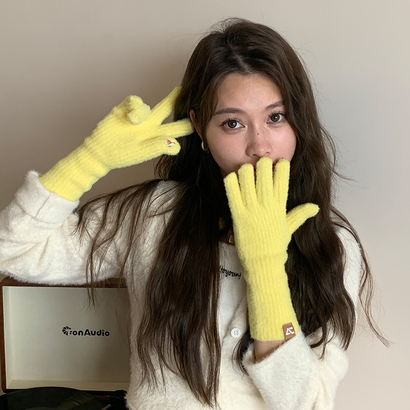니트 조커 방한 따뜻한 장갑 겨울 패션 심플 솔리드 컬러 캐주얼 편안한 통기성 도파민 컬러 장갑