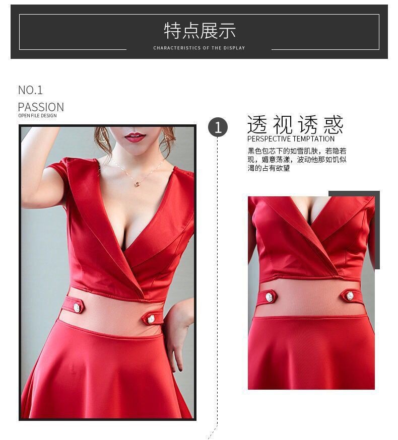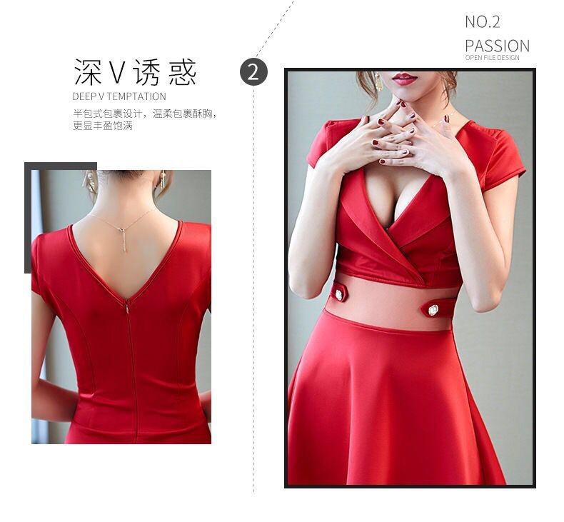 2023 새로운 여성 앵커 섹시 발 목욕 로우 컷 브이넥 슬림 힙합 ktv 밤 원피스 조수 3556스토어 가기