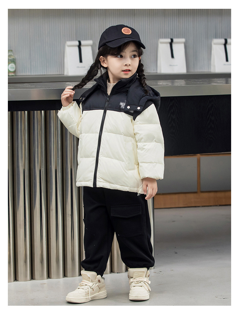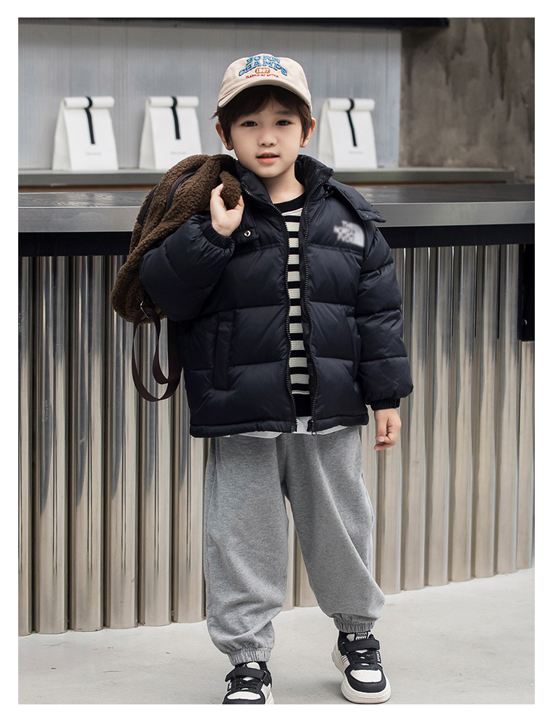 2024년 신형 아동 방한복 남아 여아 두꺼운 탈부착 가능한 모자 코트 유아 아동복스토어 가기