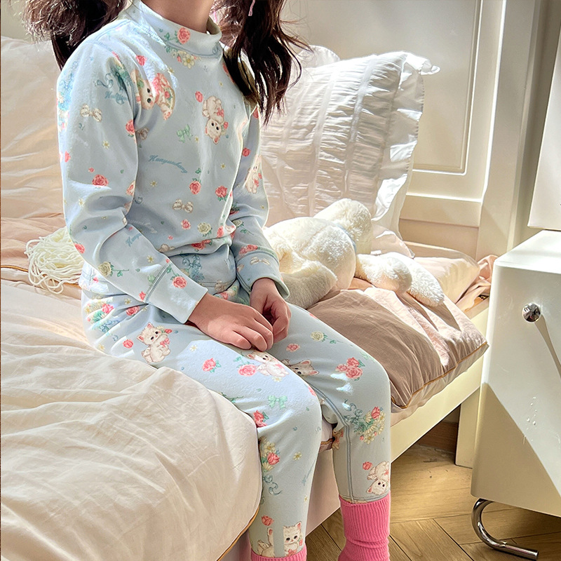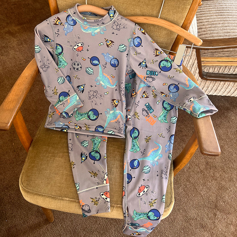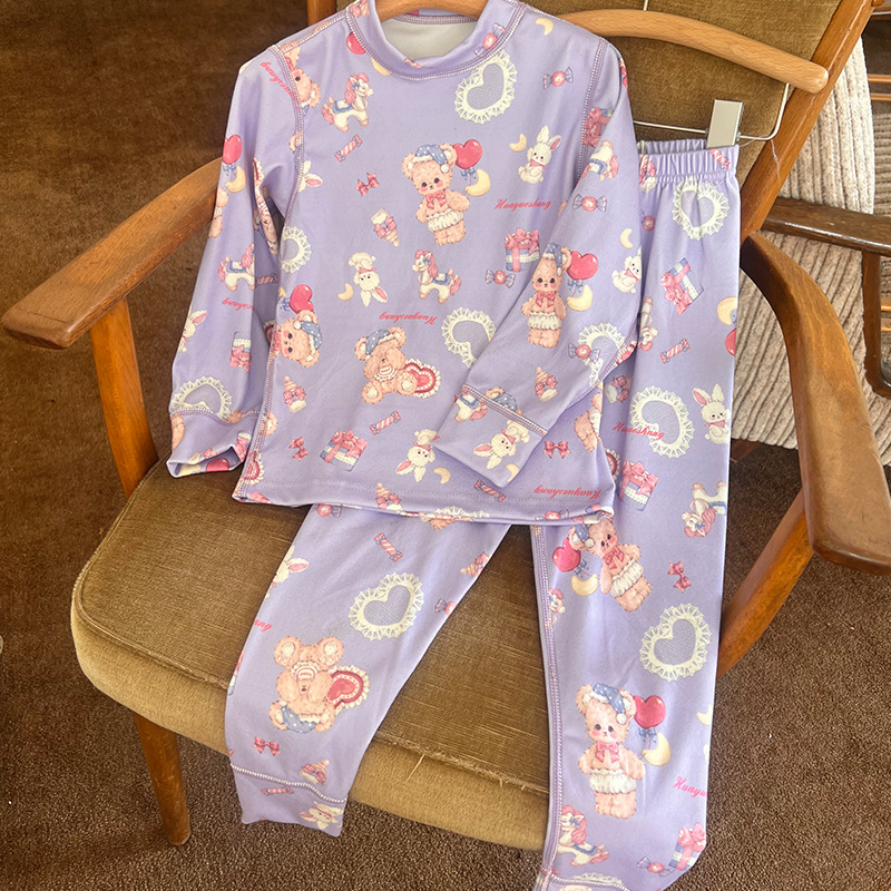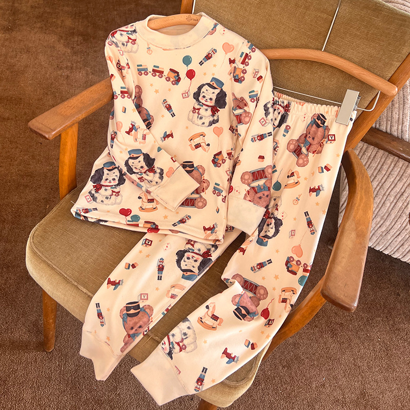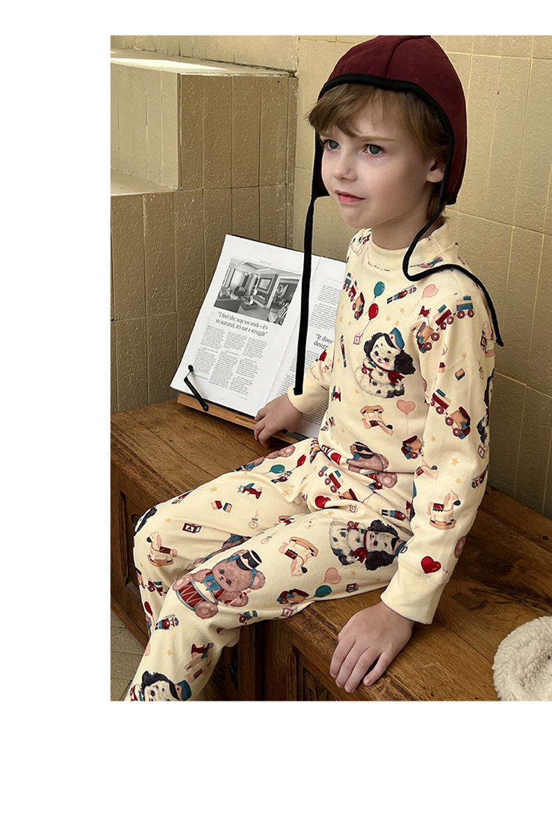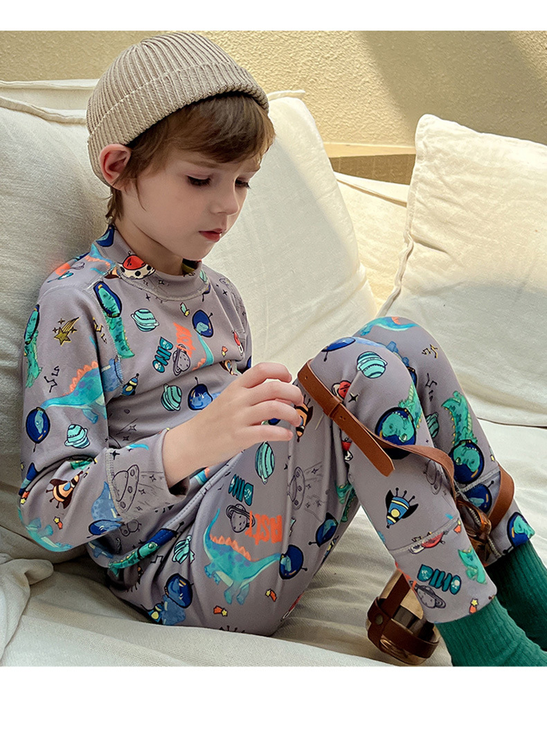 새로운 어린이 중간 칼라 인쇄 속옷 세트 큰 어린이의 가을과 겨울 따뜻한 가정 옷 소년 기모 가을 옷 긴 존스