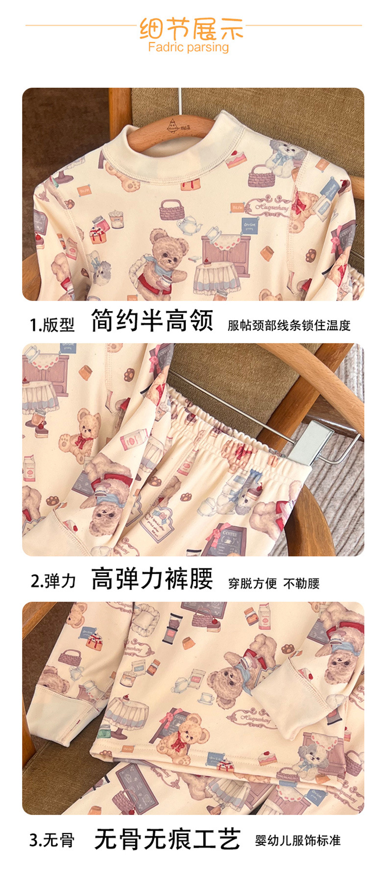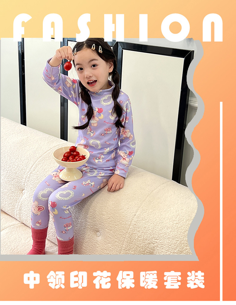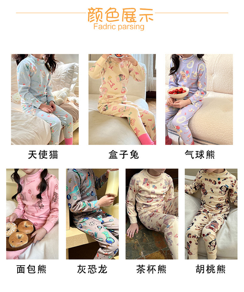 새로운 어린이 중간 칼라 인쇄 속옷 세트 큰 어린이의 가을과 겨울 따뜻한 가정 옷 소년 기모 가을 옷 긴 존스스토어 가기