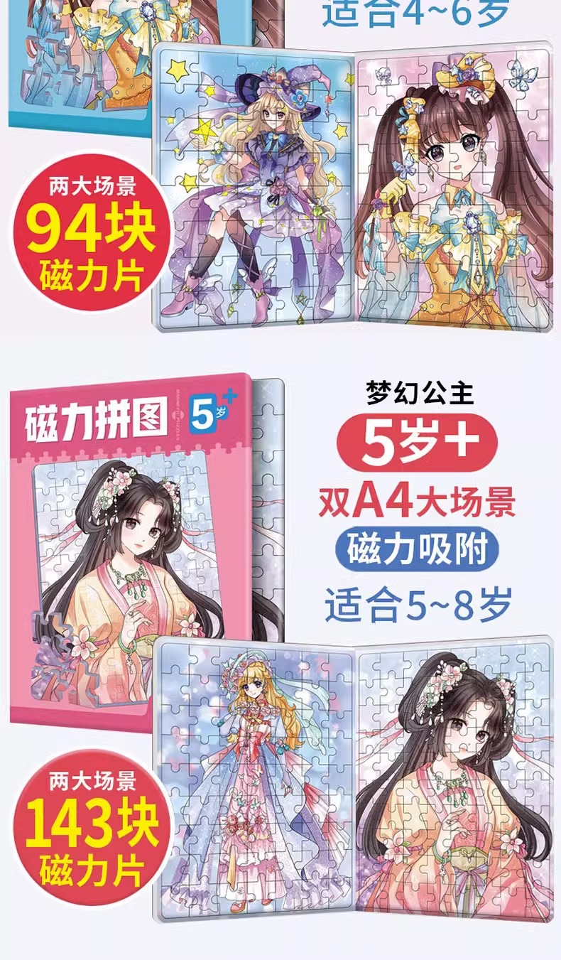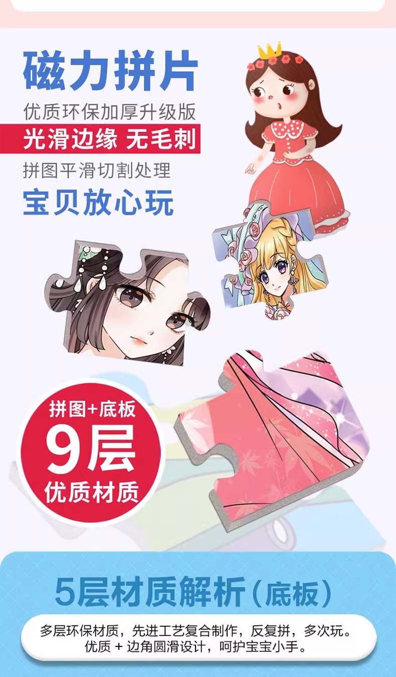 마그네틱 퍼즐 3 ~ 6 세 어린이 교육 소녀 유아 골동품 공주 퍼즐 마그네틱 크리에이티브 조립 장난감스토어 가기