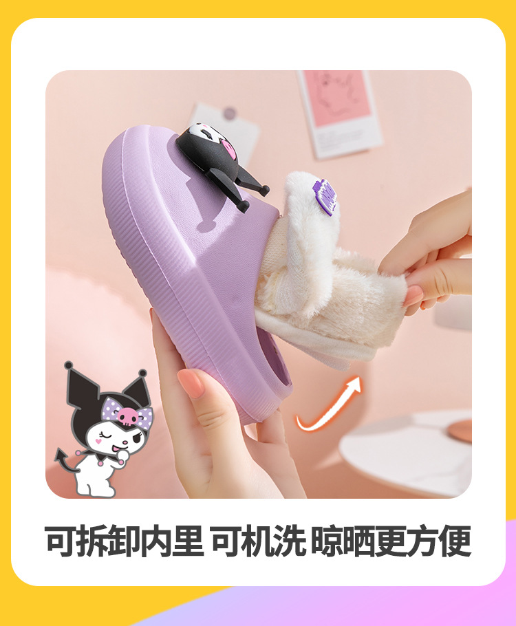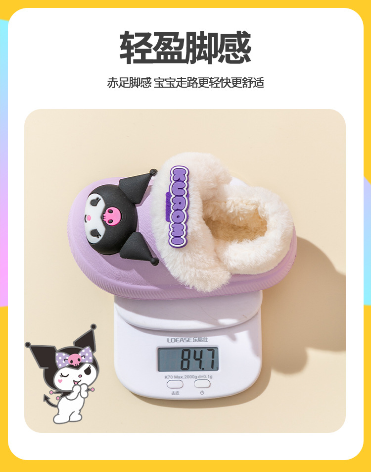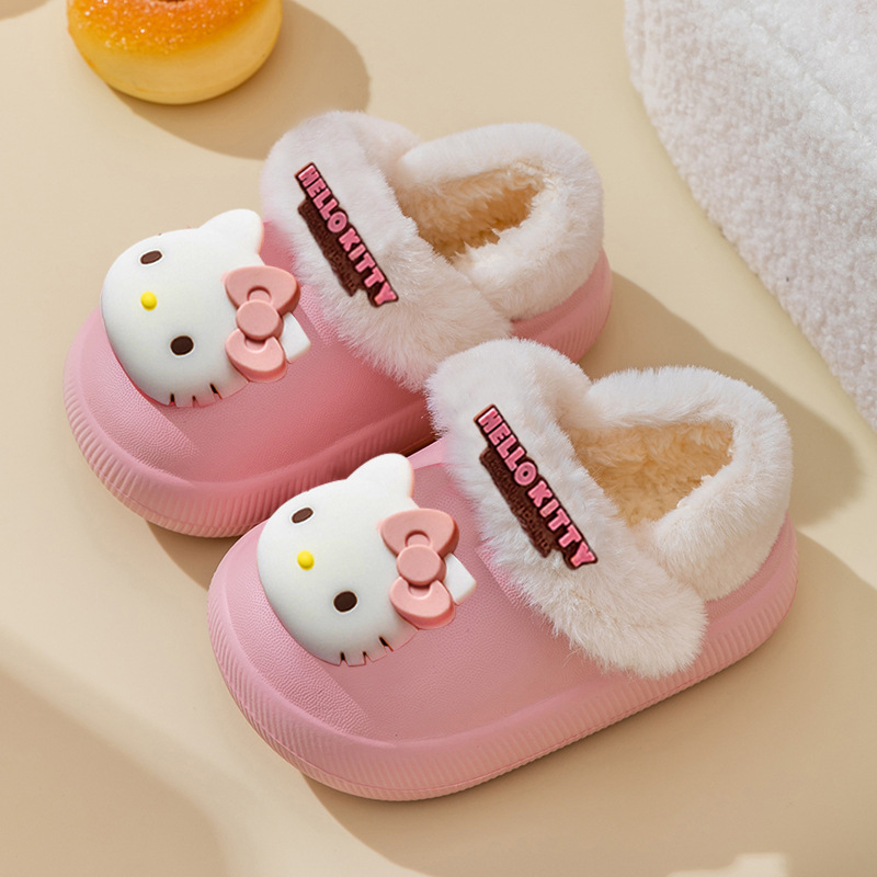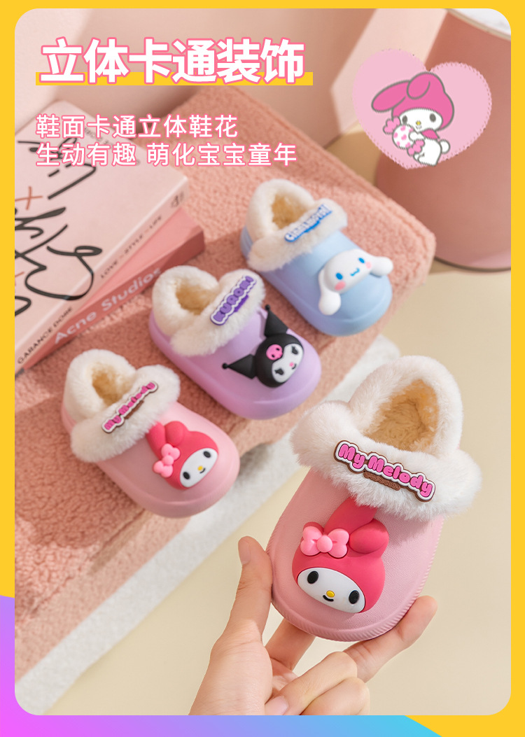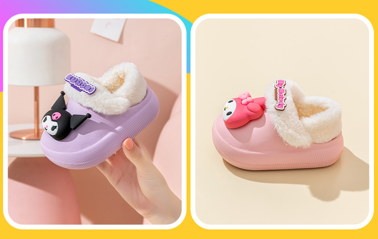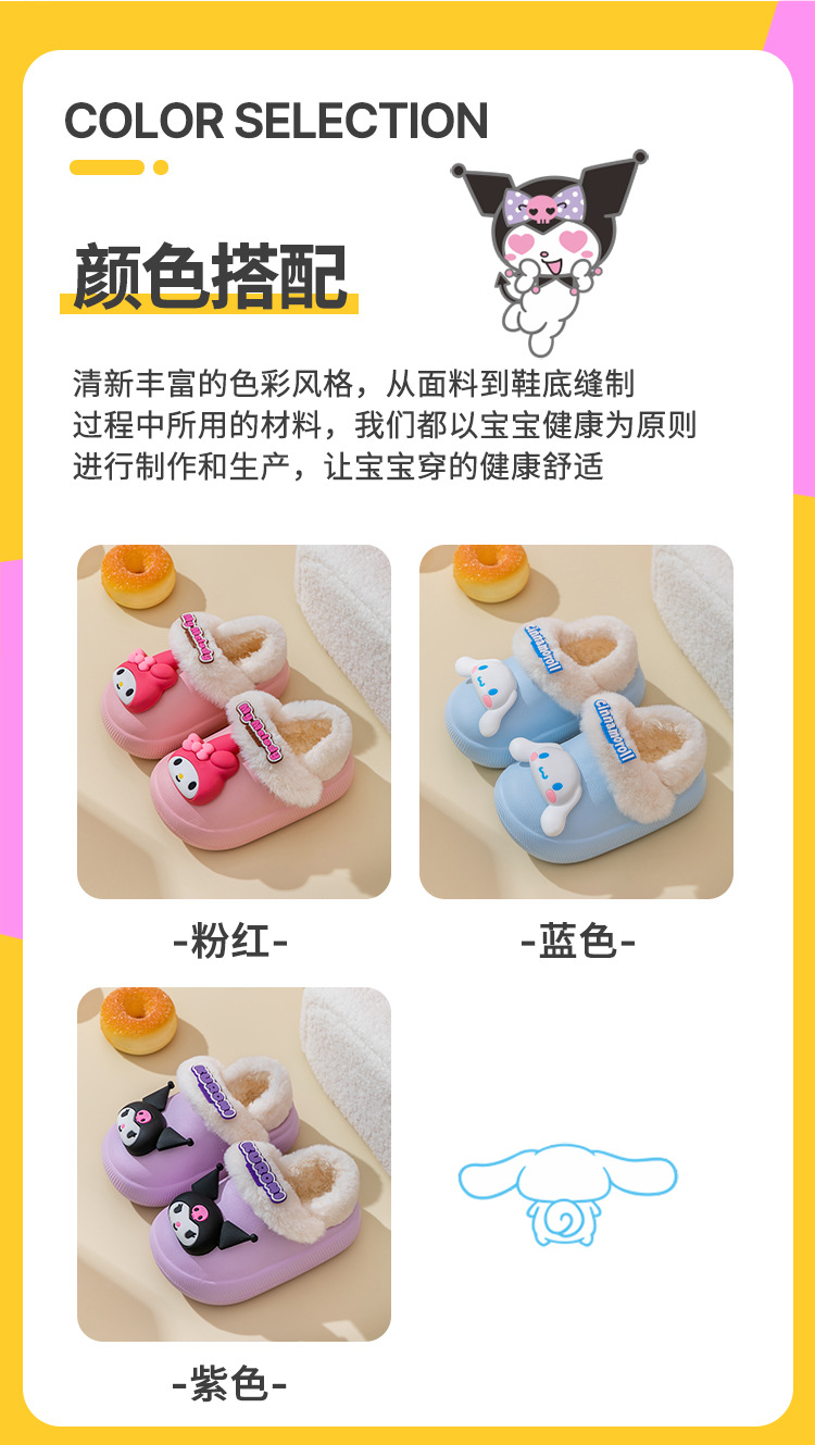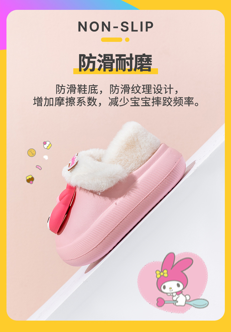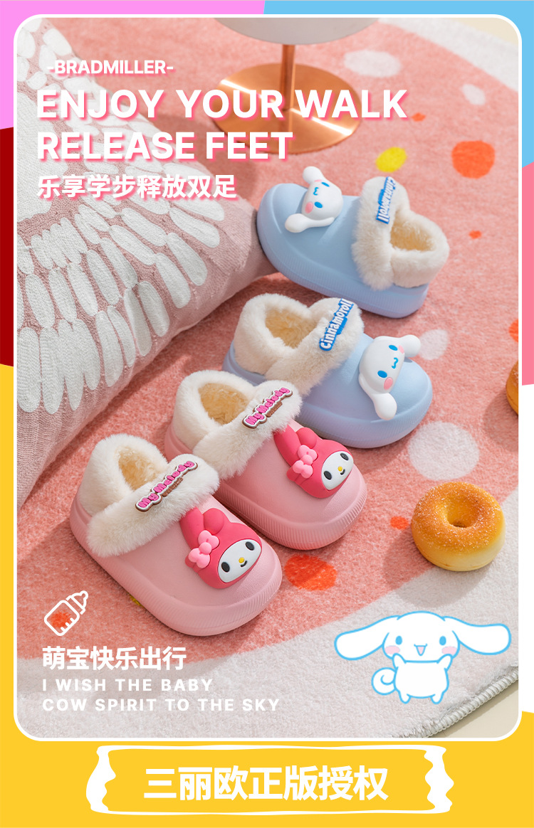 소년과 소녀를위한 Sanrio 어린이 면화 슬리퍼 겨울 귀여운 만화 실내 가정 양모 면화 신발 탈착식 면화 안감
