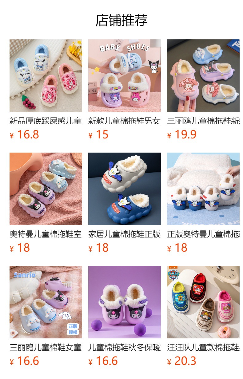 소년과 소녀를위한 Sanrio 어린이 면화 슬리퍼 겨울 귀여운 만화 실내 가정 양모 면화 신발 탈착식 면화 안감스토어 가기