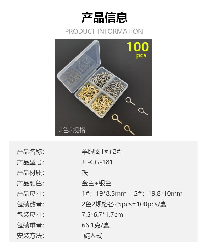 국경 간 100 조각 양 눈 반지 2 색 2 사양 후크 박스 셀프 태핑 나사 매달려 보석 램프 라인 코너 못스토어 가기