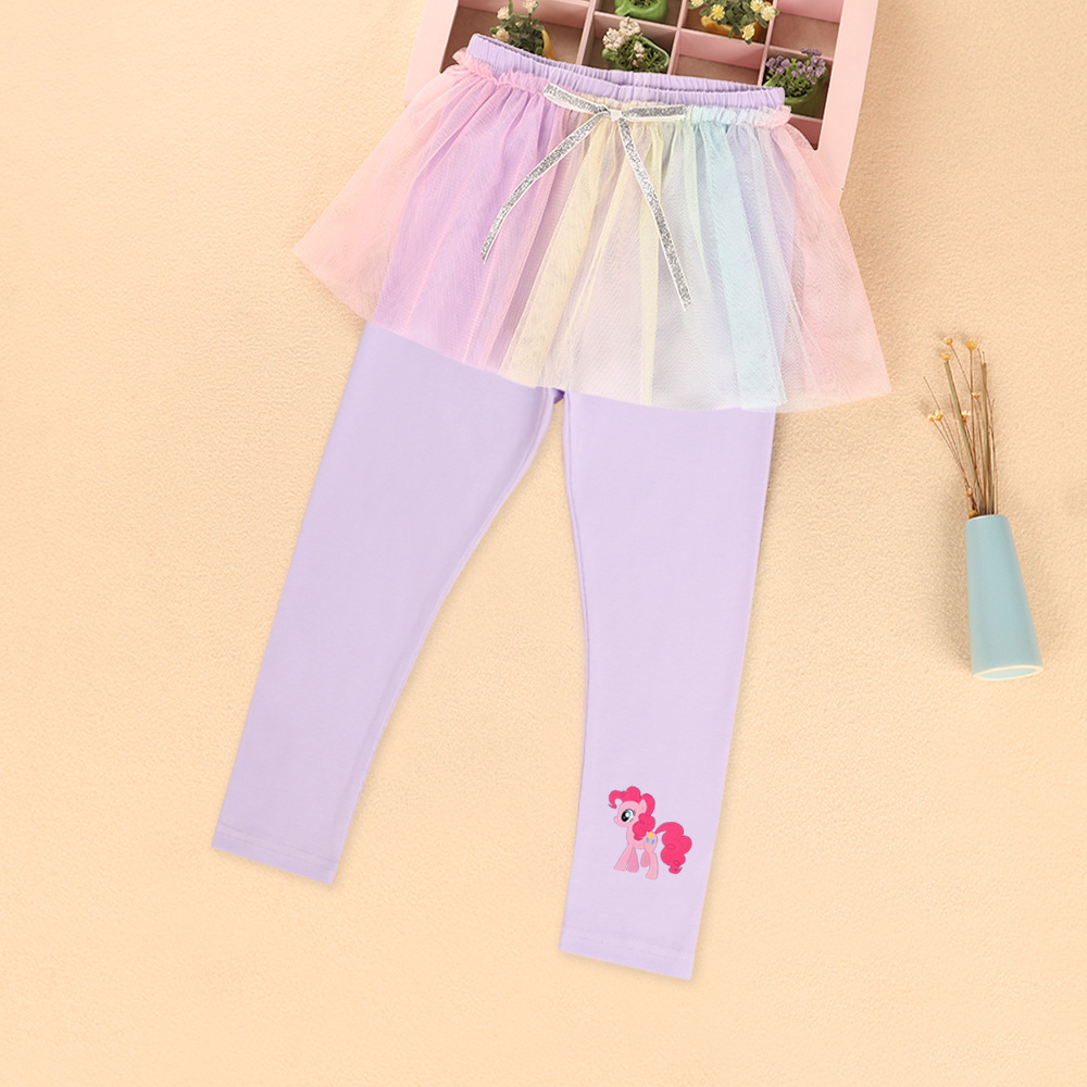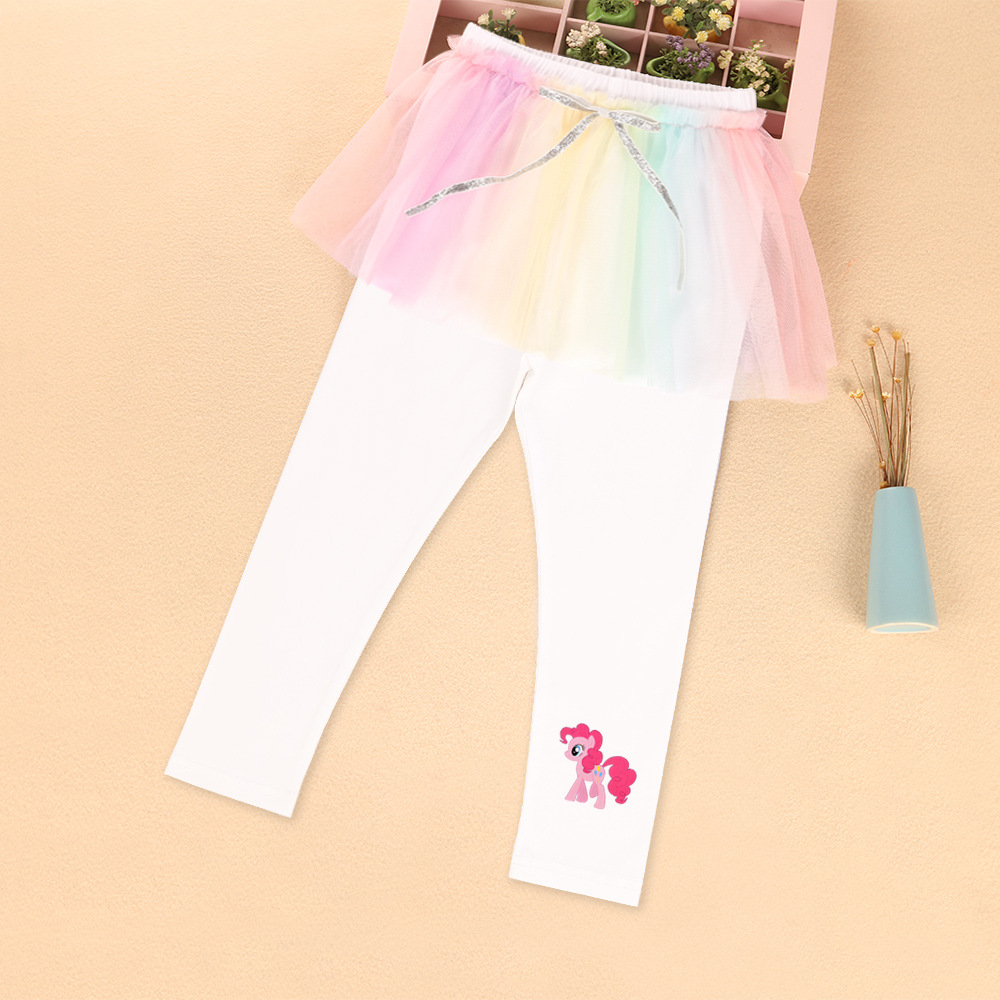 여아 바지 아동용 레깅스 겉옷 봄과 여름 얇은 긴 바지 어린 소녀의 레인보우 베일 원피스 가짜 투피스 아동복