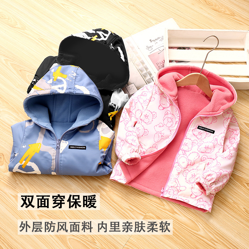 새로운 가을과 겨울 기모 러쉬 의류 중소 규모 어린이 큰 어린이 양면 따뜻한 재킷 소년과 소녀 Polar Fleece Pro