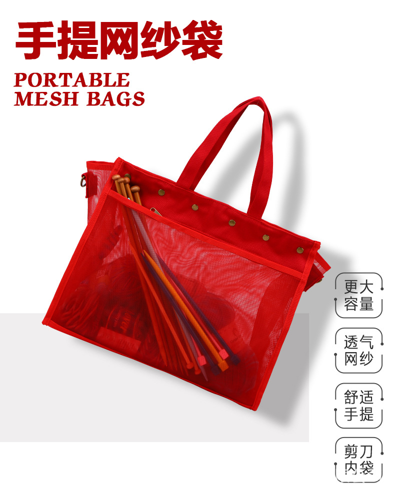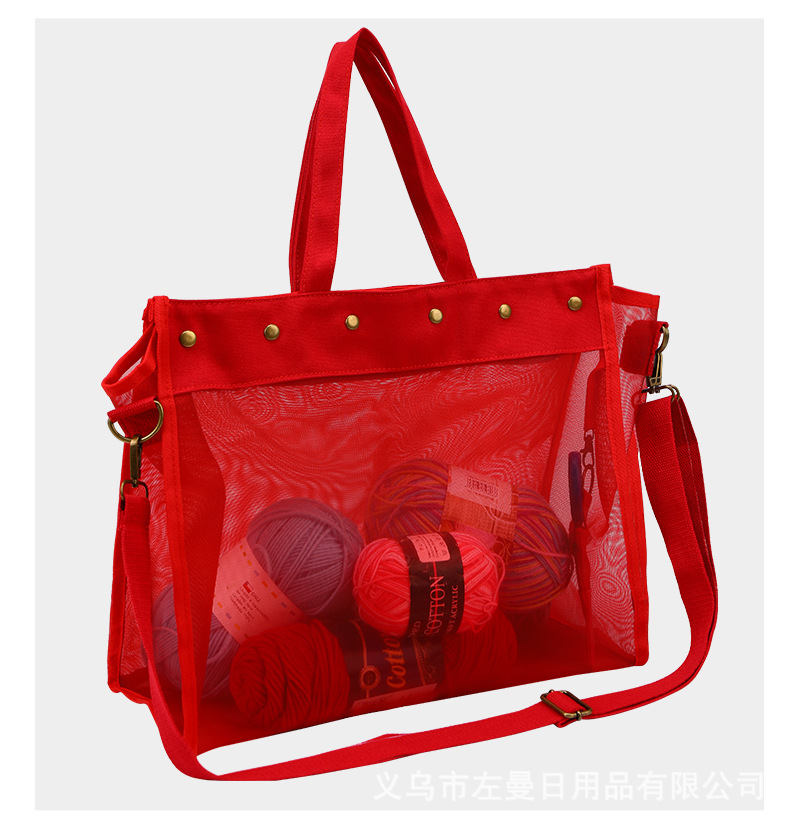 국경을 넘는 새로운 스타일의 PVC 메쉬 수납 가방, 휴대용 투명 뜨개질 도구 수납 크로스백 핸드백스토어 가기