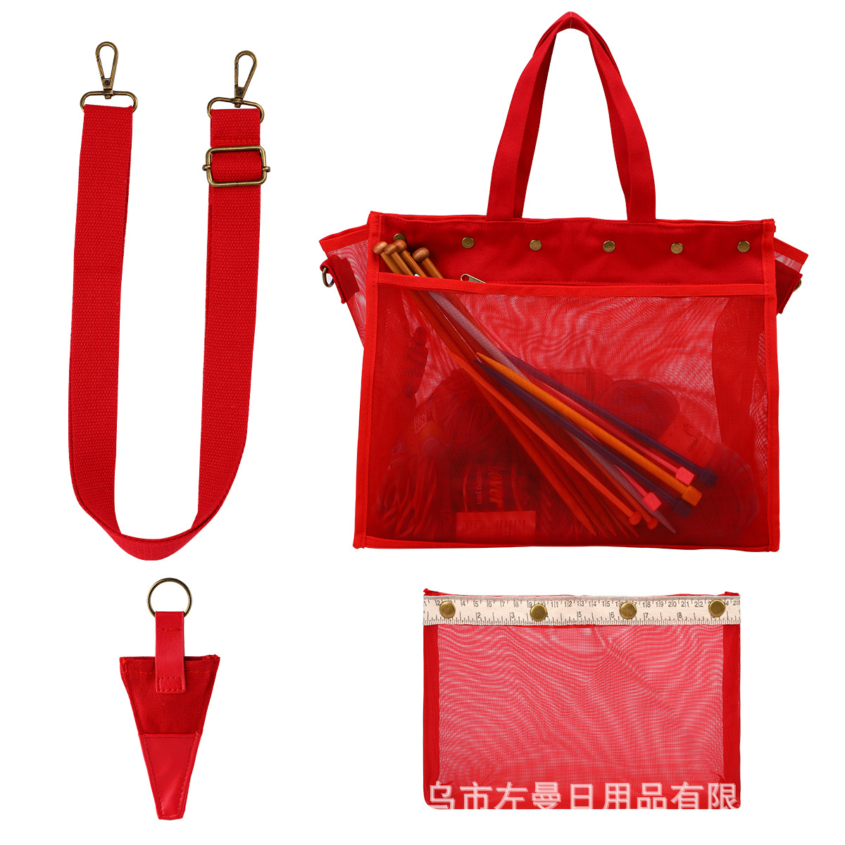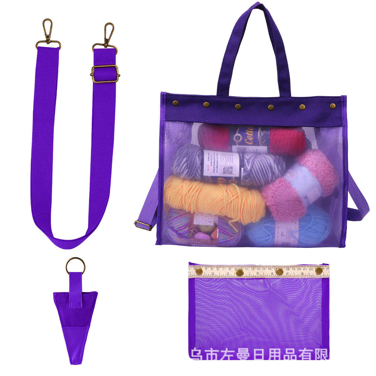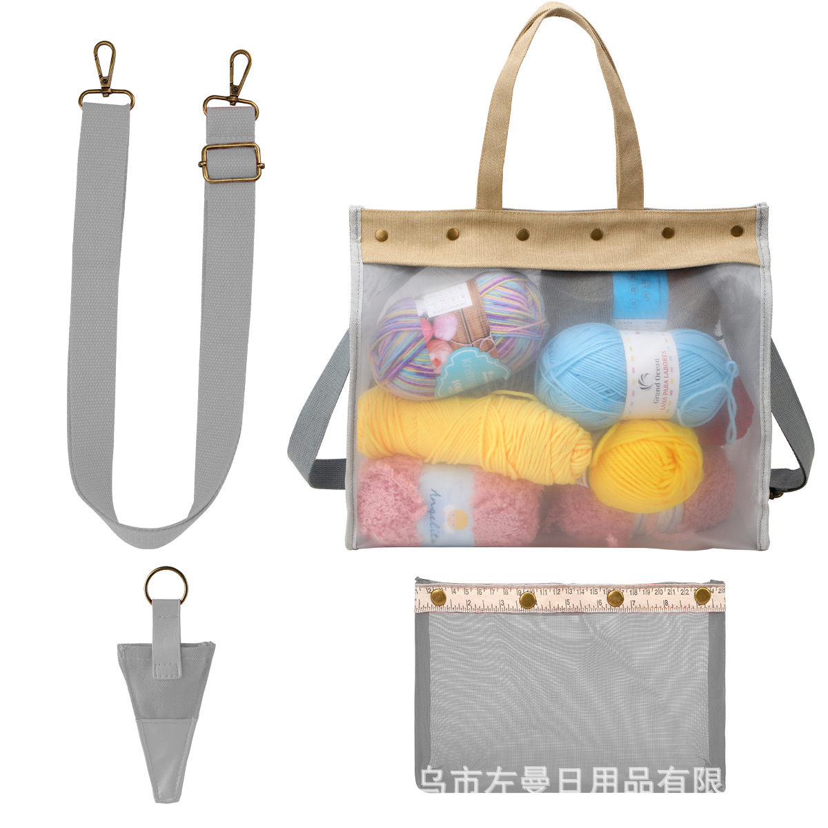 국경을 넘는 새로운 스타일의 PVC 메쉬 수납 가방, 휴대용 투명 뜨개질 도구 수납 크로스백 핸드백