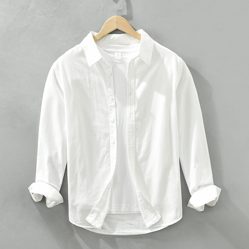 6651 일본의 간단한 긴 소매 캐주얼 셔츠 남자의 문학 신선한 옷깃 느슨한베이스 코트 머리카락의 세대