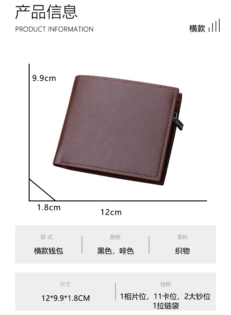국경 간 대외 무역 지갑 지퍼가 달린 짧은 남성용 두꺼운 남성용 지갑 멀티 카드 홀더 남성 지갑 남성 패션