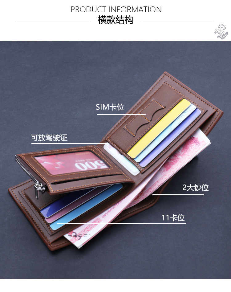 국경 간 대외 무역 지갑 지퍼가 달린 짧은 남성용 두꺼운 남성용 지갑 멀티 카드 홀더 남성 지갑 남성 패션스토어 가기