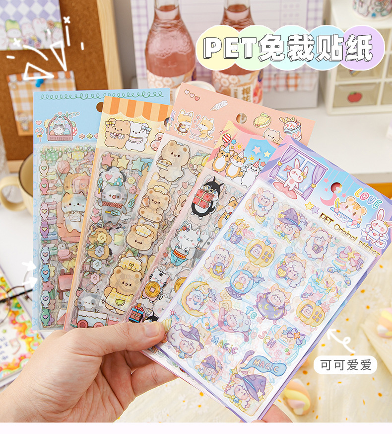 귀여운 손 계정 스티커 도매 만화 어린이 PET 방수 장식 재료 물 컵 일기 스티커 in 바람 스티커스토어 가기