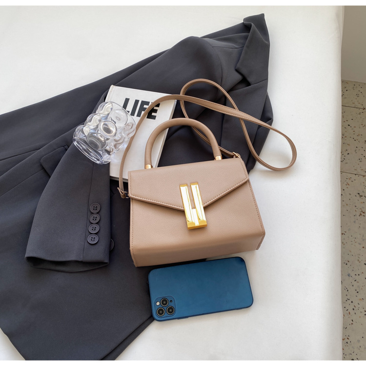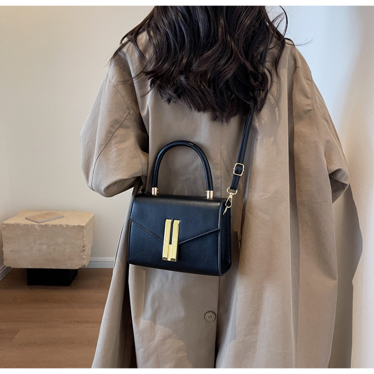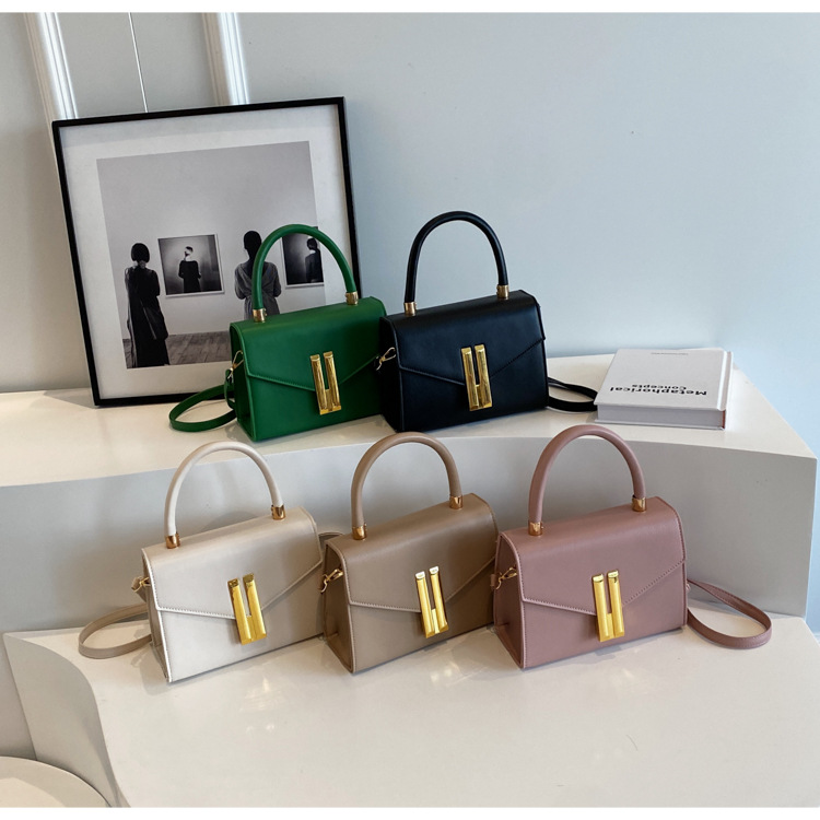 심플 스타일 가죽 스몰 스퀘어 백 여성용 가방 2023 유행 특유의 래치 숄더백 유럽과 미국 트렌드 휴대용 크로스 바디 백스토어 가기