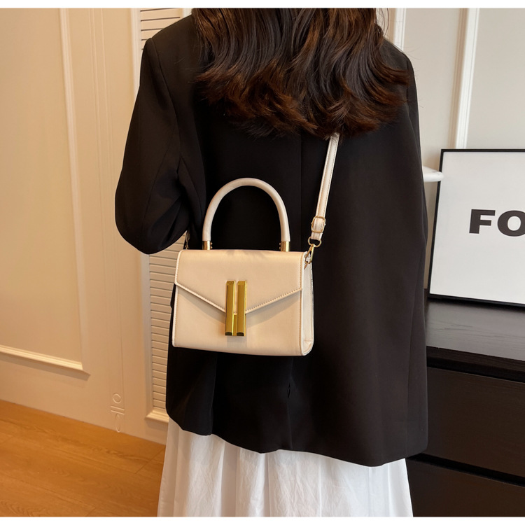 심플 스타일 가죽 스몰 스퀘어 백 여성용 가방 2023 유행 특유의 래치 숄더백 유럽과 미국 트렌드 휴대용 크로스 바디 백