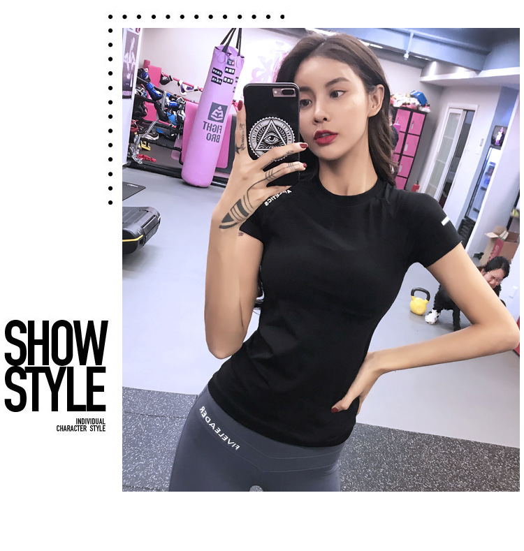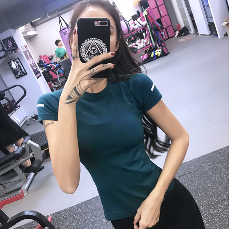 여름 얇은 충격 방지 푸시 업 속건 피트니스 티셔츠 탑 여성용 스트레치 바디 쉐이핑 필라테스 트레이닝 요가복스토어 가기