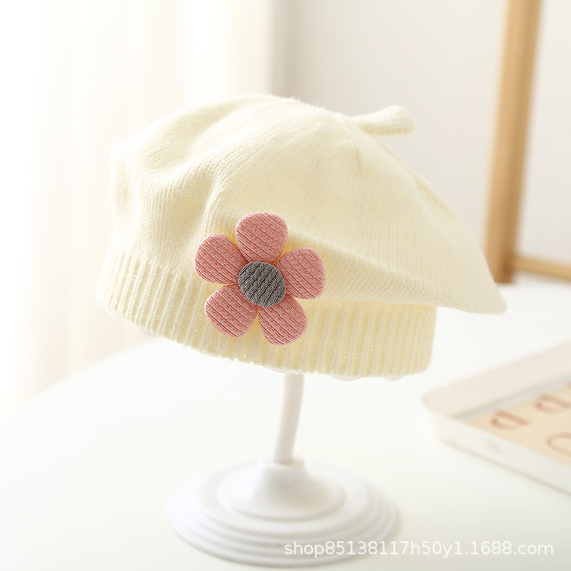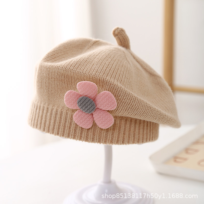 아기 모자 가을과 겨울 여성의 아기 귀여운 꽃 베레모 어린이 양모 모자 여아 니트 화가 모자 트렌디스토어 가기