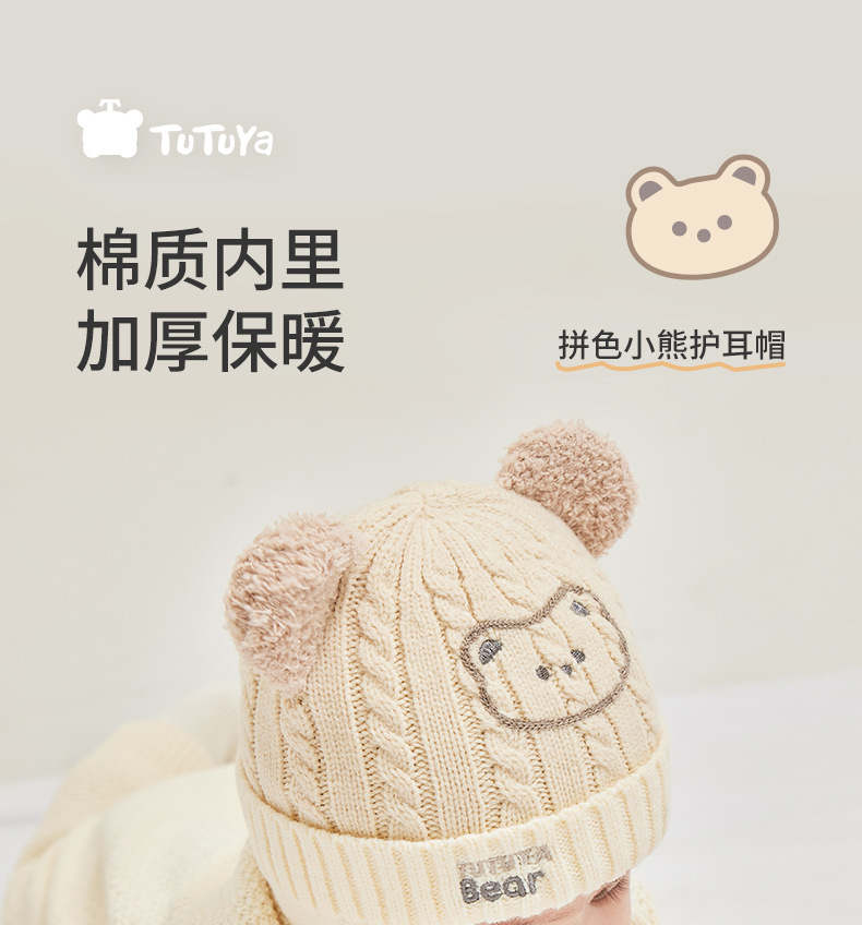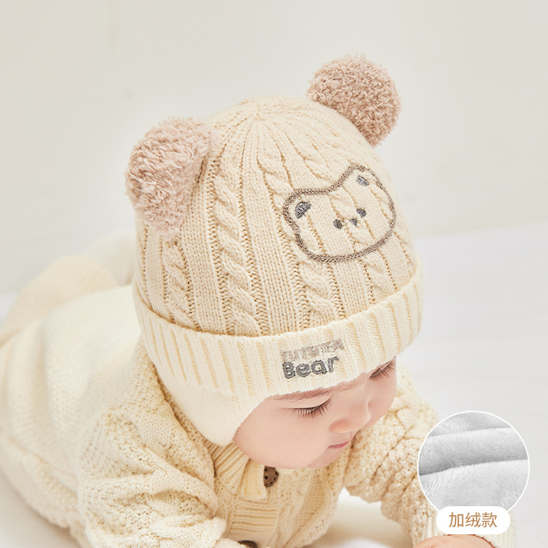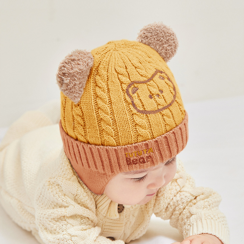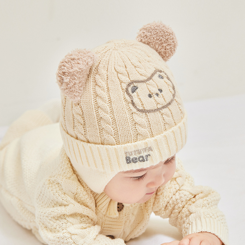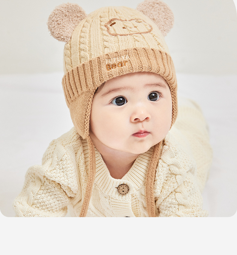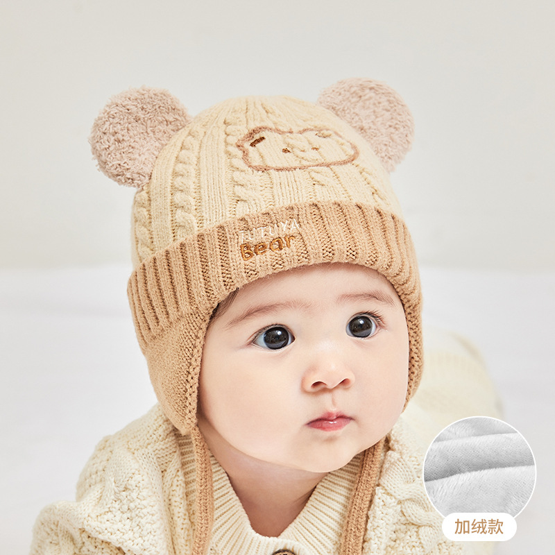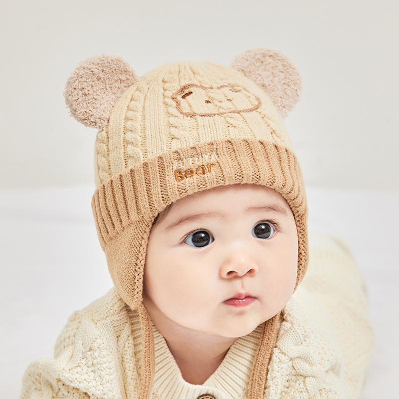 투투야 아기 모자 가을과 겨울 2023 새로운 소년 소녀 아기 귀 보호 양모 모자 어린이 니트 모자 한국어스토어 가기