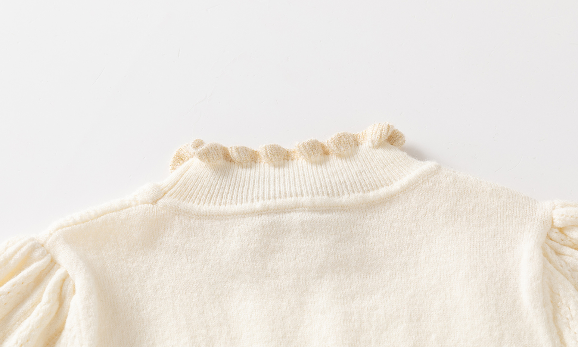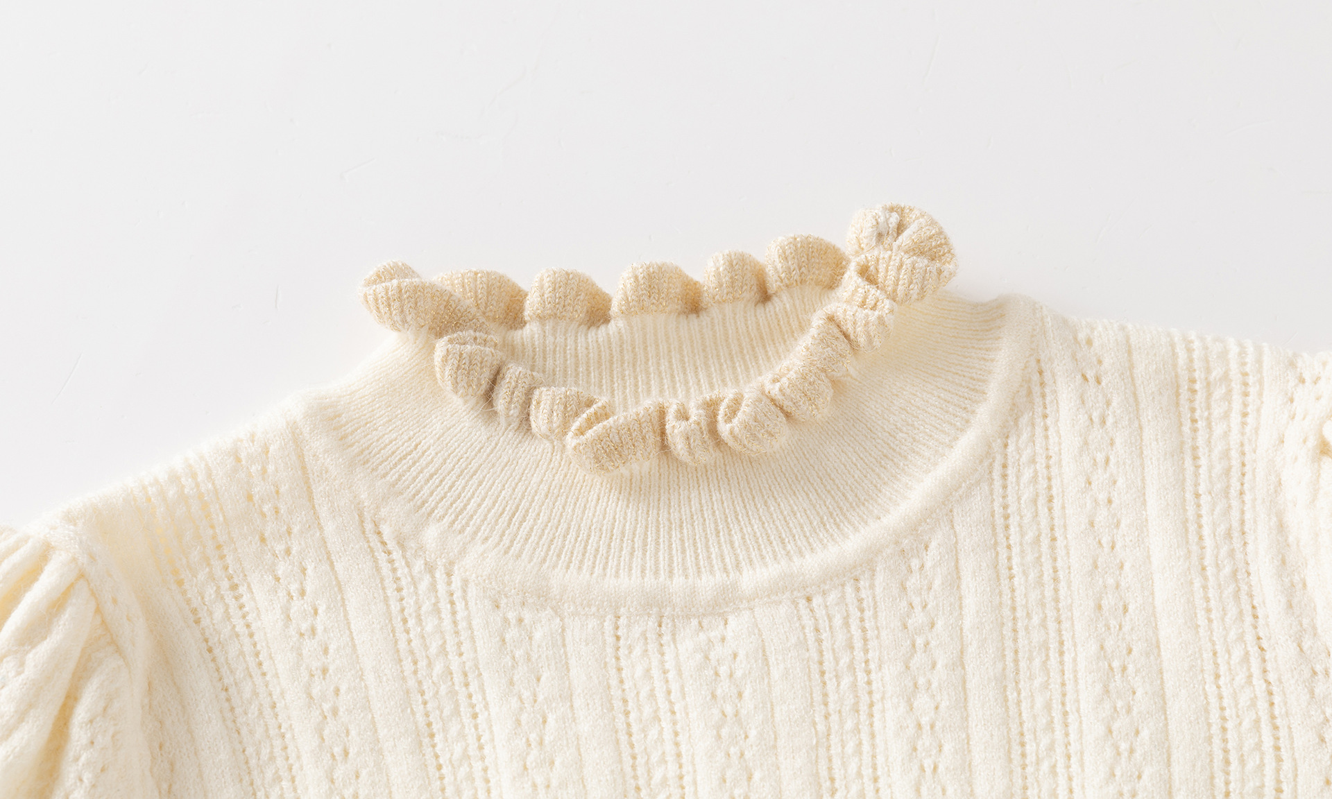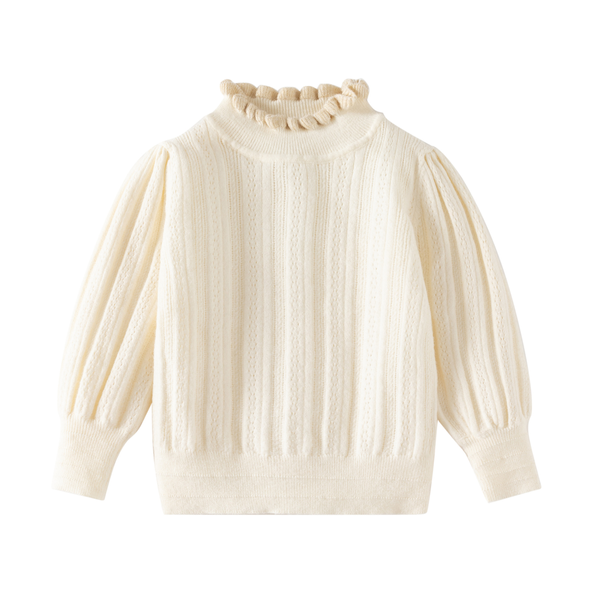 가을과 겨울 새로운 아동복 아기 소녀 기질 모든 경기 아이보리 중공 버블 슬리브 니트 스웨터 코튼 베이스 코트스토어 가기