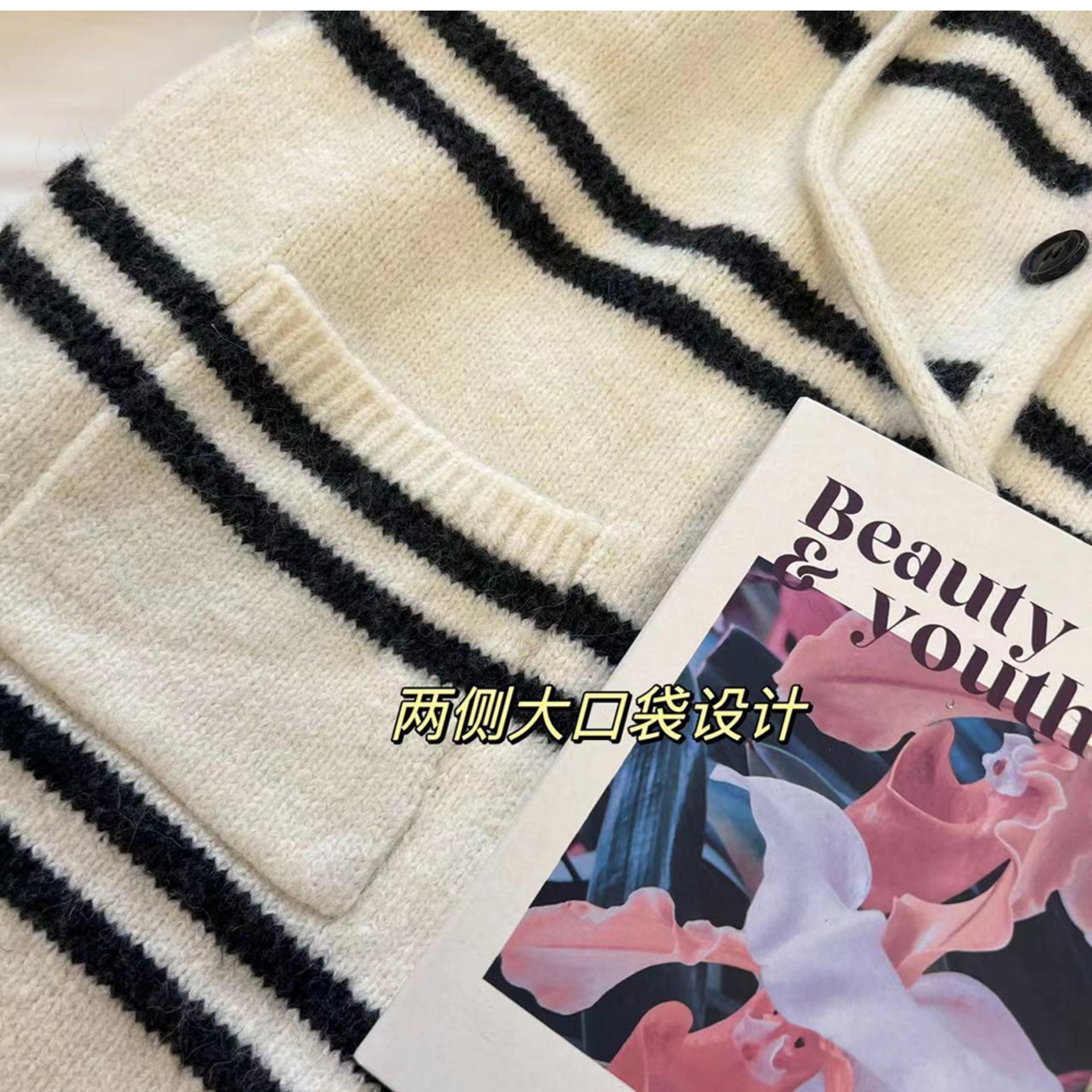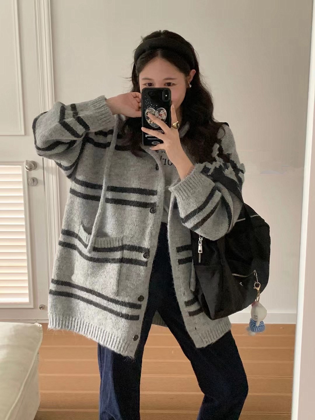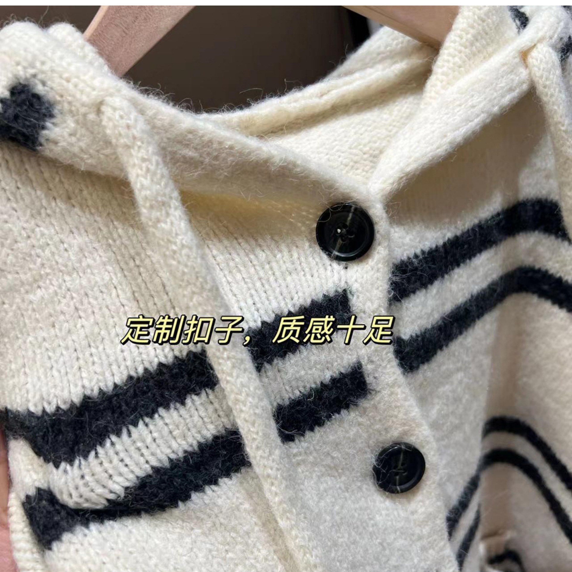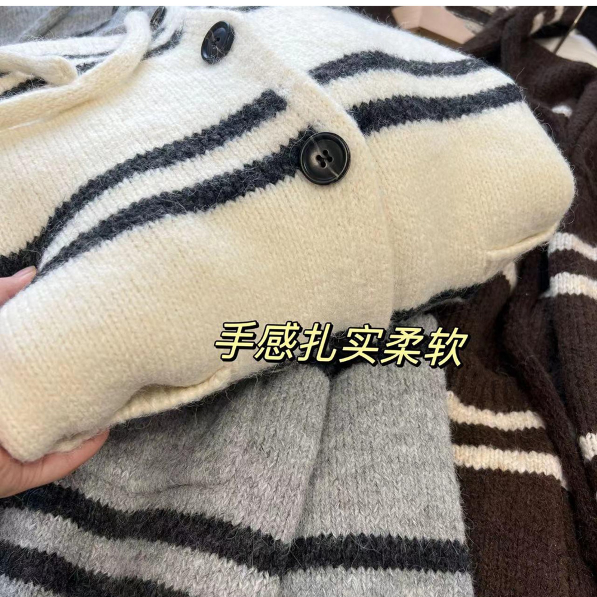 한국 스타일 가을과 겨울 새로운 후드 스트라이프 니트 카디건 여자의 최고 느슨한 게으른 스타일 플러스 사이즈 부드러운 왁스 스웨터 코트스토어 가기