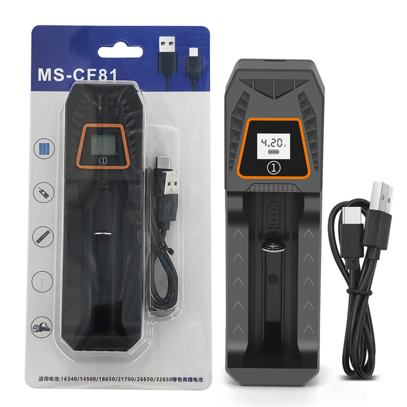 18650 충전기 타입-C 지능형 싱글 슬롯 고속 충전 디스플레이 3.7V 리튬 배터리 충전 보물 배터리 미터스토어 가기
